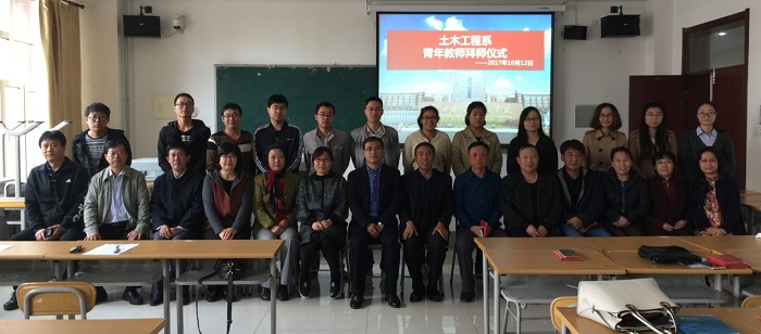 为转变思想观念,加强内涵建设,土木工程系于10月12日下午在3教B208教室举行了“青年教师拜师仪式”。教务处副处长金艳教授、土木工程系主任李自林教授、系党总支书记杨凯同志以及全系教职员工参加了此次活动。 李自...