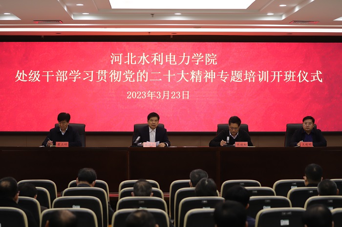 为深入学习贯彻党的二十大精神,进一步加强干部教育工作,3月23日上午,学院在弘文.守正楼九楼报告厅举行学习贯彻党的二十大精神专题培训班开班式,党委书记陈进杰出席会议并作动员讲话,学院领导、全体处级干部参加...