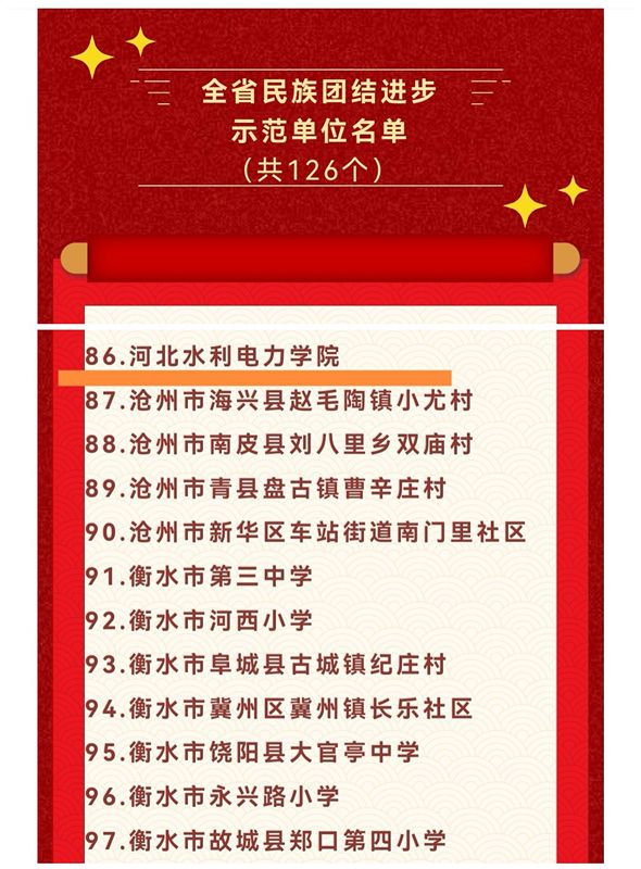 12月26日,河北省民族事务委员会发布命名文件,公布了省级民族团结进步示范区示范单位名单,全省共评选出19个民族团结进步示范区和126个示范单位,beat365被命名全省民族团结进步示范单位!一直以来,beat365党委高度重视民族工作,将民族团结作为构建“大统战”工作格局重要抓手,通过创新方式方法,找准心理契合点、情感共鸣点和价值结合点,在育人工作中突出“中华民族一家亲、同心共筑中国梦”这一主线,努力加强各民族师生交流交融,...
