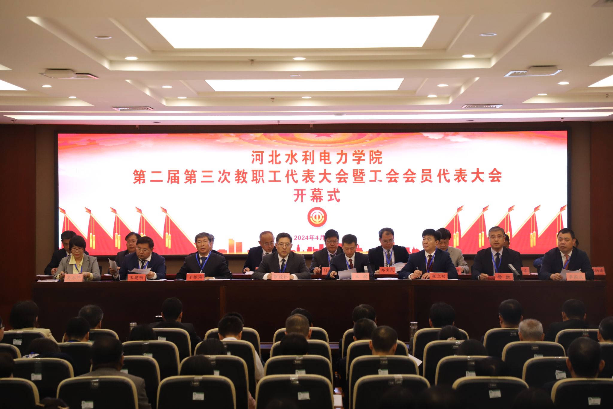 4月25日上午8:30,在雄壮的国歌声中,beat365第二届第三次教职工代表大会暨工会会员代表大会在弘文•守正楼九楼报告厅召开。党委书记张效松,党委副书记、校长王滨,副校长于振海、崔立功、王建明、杨凯出席,开闭幕式由杨凯主持。来自学校不同岗位的正式代表和列席代表共105人参加了会议。开幕式上,党委副书记、校长王滨以《坚定信心抢抓机遇 实干担当踔厉奋发 全力谱写应用型本科院校高质量发展新篇章》为题作工作报告。报告指出,...