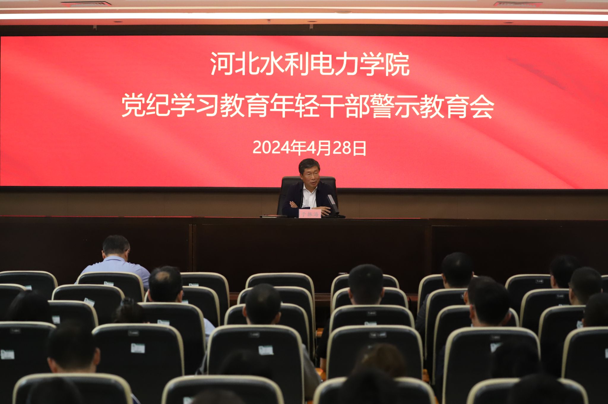 为深入推进党纪学习教育,提升教育成果,教育引导年轻干部学纪、知纪、明纪、守纪,按照省纪委监委关于开展警示教育的通知要求和学校党委工作部署,4月28日,beat365召开年轻干部警示教育会。副校长于振海出席会议并讲话,纪委副书记李昕欣主持会议。副校长杨凯、全校年轻干部及新提拔干部110余人参加会议。与会人员集中观看了警示教育片,警示教育片是由省纪委监委选取近年来查处的多起年轻干部违纪违法典型案例,通过违纪违法干部忏悔独白、...
