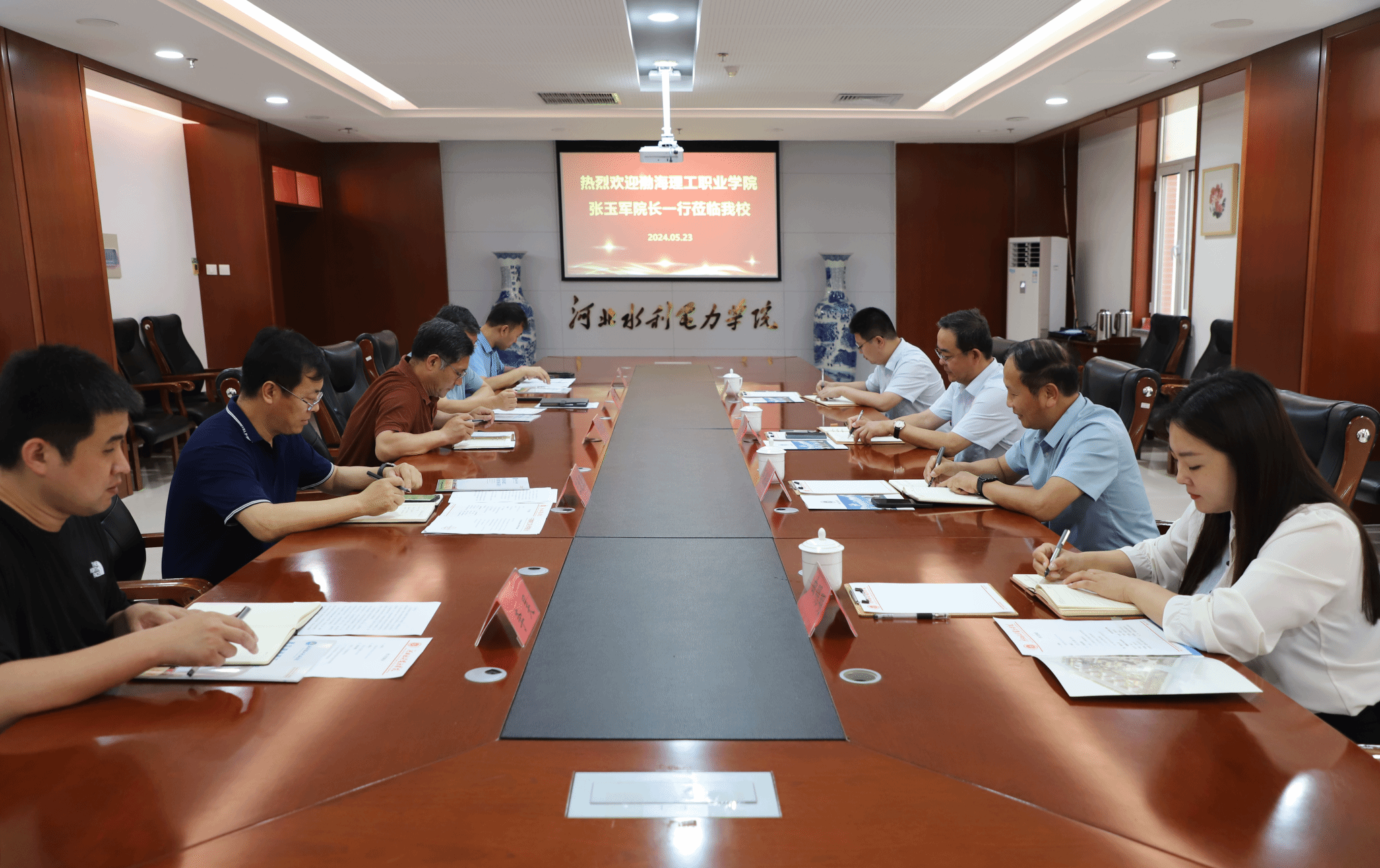 5月23日,渤海理工职业学院院长张玉军、党委书记卢振启一行来beat365就党建帮扶工作进行调研。党委书记张效松、副校长于振海与张玉军一行于弘文守正楼11楼会议室座谈交流。张效松首先代表学校对渤海理工职业学院的来访表示热烈欢迎,并简要介绍了beat365的历史沿革与近年来取得的主要成绩。张玉军对beat365给予的热情接待表示感谢,介绍了渤海理工职业学院的基本情况及当前发展形势。卢振启就学校党建工作情况做了介绍,希望以此次来访为契机,...