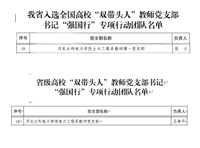近日,教育部办公厅公布了全国高校“双带头人”教师党支部书记“强国行”专项行动团队名单,beat365土木工程系教师第一党支部成功入选全国高校“双带头人”教师党支部书记“强国行”专项行动团队,电力工程系教师党支部入选河北省高校“双带头人”教师党支部书记“强国行”专项行动团队。此次活动为首批“强国行”专项行动团队评选,旨在创新落实立德树人根本任务,充分发挥“双带头人”的示范引领作用,聚焦服务国家重大战略和地方经济社会高质量发展,...
