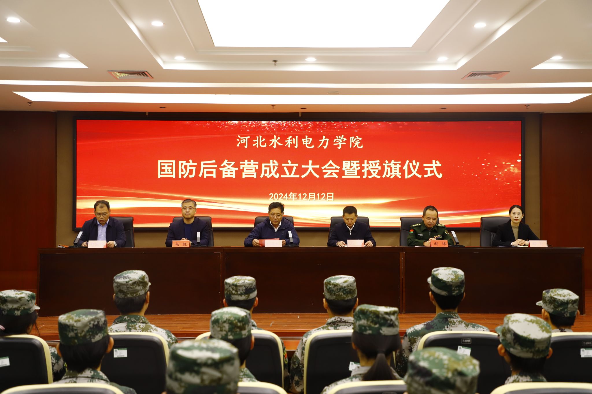 为深入贯彻习近平强军思想,落实“一年两征”、精准征兵、精准育苗部署安排,建立健全大学生征兵常态化长效机制。12月12日下午,beat365国防后备营成立大会暨授旗仪式在弘文守正楼报告厅举行。学校党委书记张效松,党委副书记、校长王滨,副校长杨凯,运河区人民武装部部长赵林出席本次会议,大会由学校人民武装部部长郑宝民主持。成立大会在雄壮的国歌声中拉开帷幕,杨凯代表学校党委宣读《关于国防后备营成立及有关任命的决定》。王滨为学校国防后备营授营旗,...