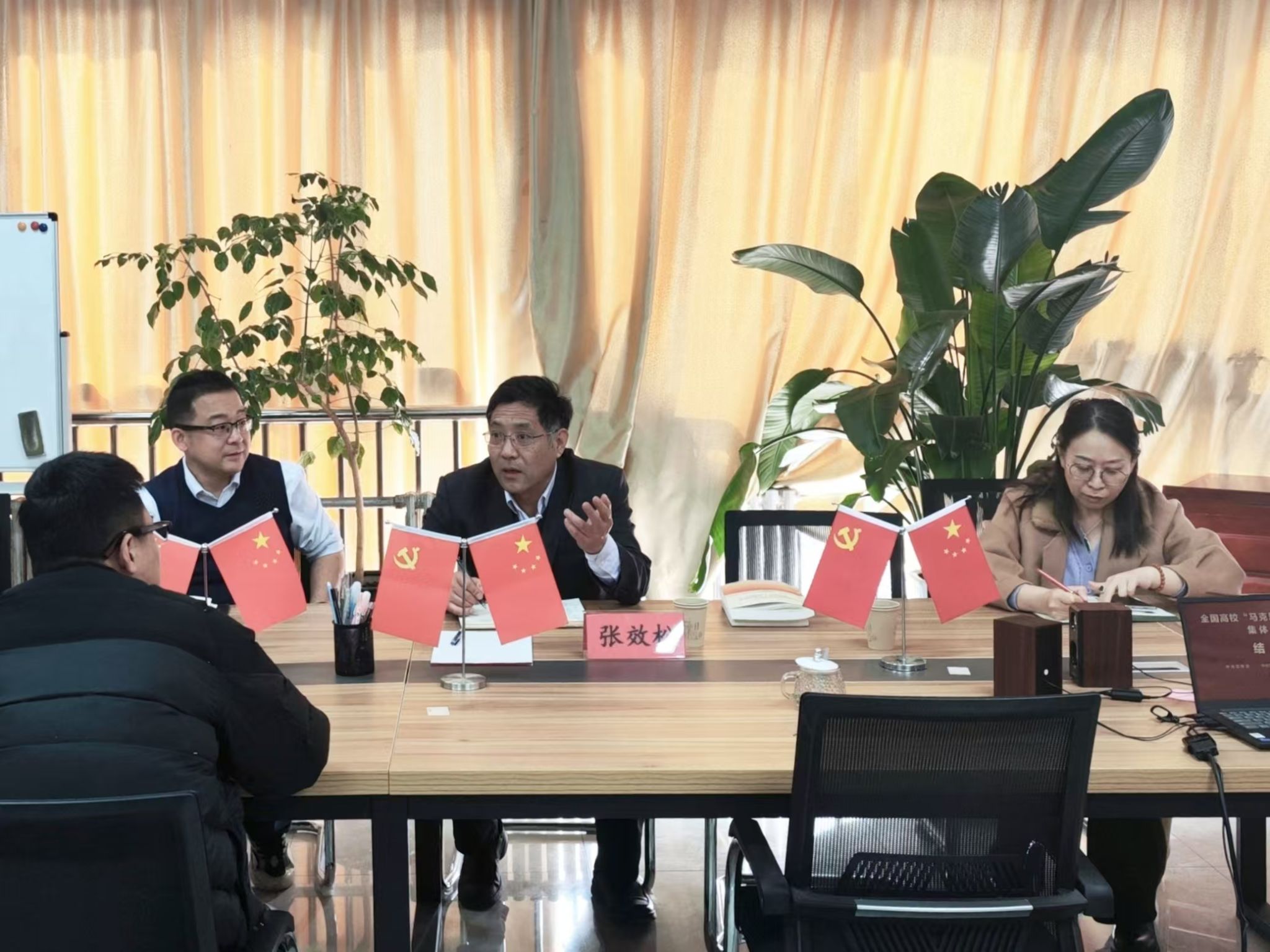 为深入学习贯彻落实党的二十届三中全会精神和习近平总书记对学校思政课建设作出的重要指示精神,不断提升马克思主义学院建设水平、推动高质量发展。2月26日,校党委书记张效松来到马克思主义学院开展调研指导并现场办公,与思政教师座谈交流。马克思主义学院院长贾启红、副院长崔政、各教研室主任及教师代表参加调研活动。张效松首先察看了马克思主义学院的办公设施及图书资料室等场所,了解了新学期安全、消防等工作落实情况。在随后召开的办公会议上,...