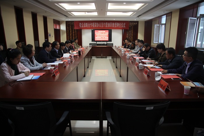 10月24日上午,在弘文·守政楼1002室举行学校与中科中蓝等5家企业举行校企战略合作框架协议签约暨兼职教授聘任仪式。中国建筑节能协会电能供热专业委员会秘书长刘志国、中科中蓝能源科技(北京)有限公司总经理赵振新...