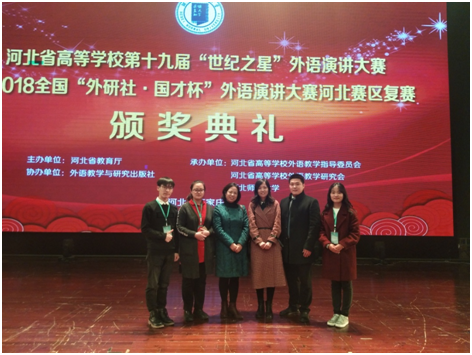 河北省第十九届“世纪之星”外语演讲大赛于2018年11月17-18日在河北师范大学成功举办,来自全省103所高校的410多名选手参加了比赛,beat365共有四名选手参赛,其中,刘泽龙荣获青年教师组二等奖,造价201654班樊娇龙和国...