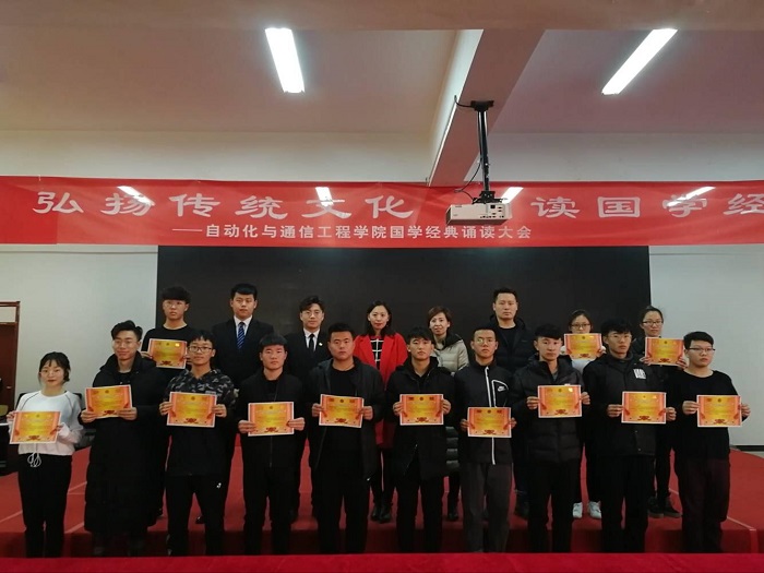 为丰富校园文化生活,推动校园文化建设,弘扬中国特色传统文化,加强大学生精神、文化素养,进一步响应校团委“万名学子诵读百遍大学”的号召,自动化与通信工程学院于12月6日在启智楼4层会议室举办以“弘扬传统文化...