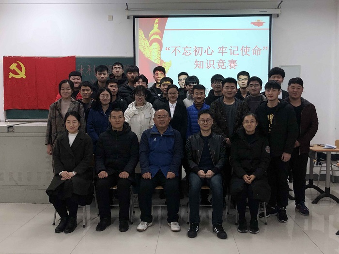 为了进一步深入学习贯彻党的十九大精神,加强学生党员对党的基本知识的理解,了解学习党章内容,增强党性观念和廉洁自律观念,水利工程学院学生支部于12月6日在4B416教室开展了“不忘初心,牢记使命”知识竞赛党日活...