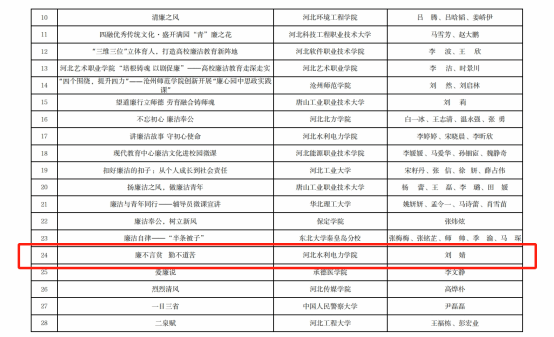 近日,由河北省教育工委主办的2024年高校党建主题作品征集活动评审结果发布,由马克思主义学院刘婧老师报送的作品《廉不言贫 勤不道苦》荣获“清廉润心,立德树人”廉洁文化建设成果二等奖。