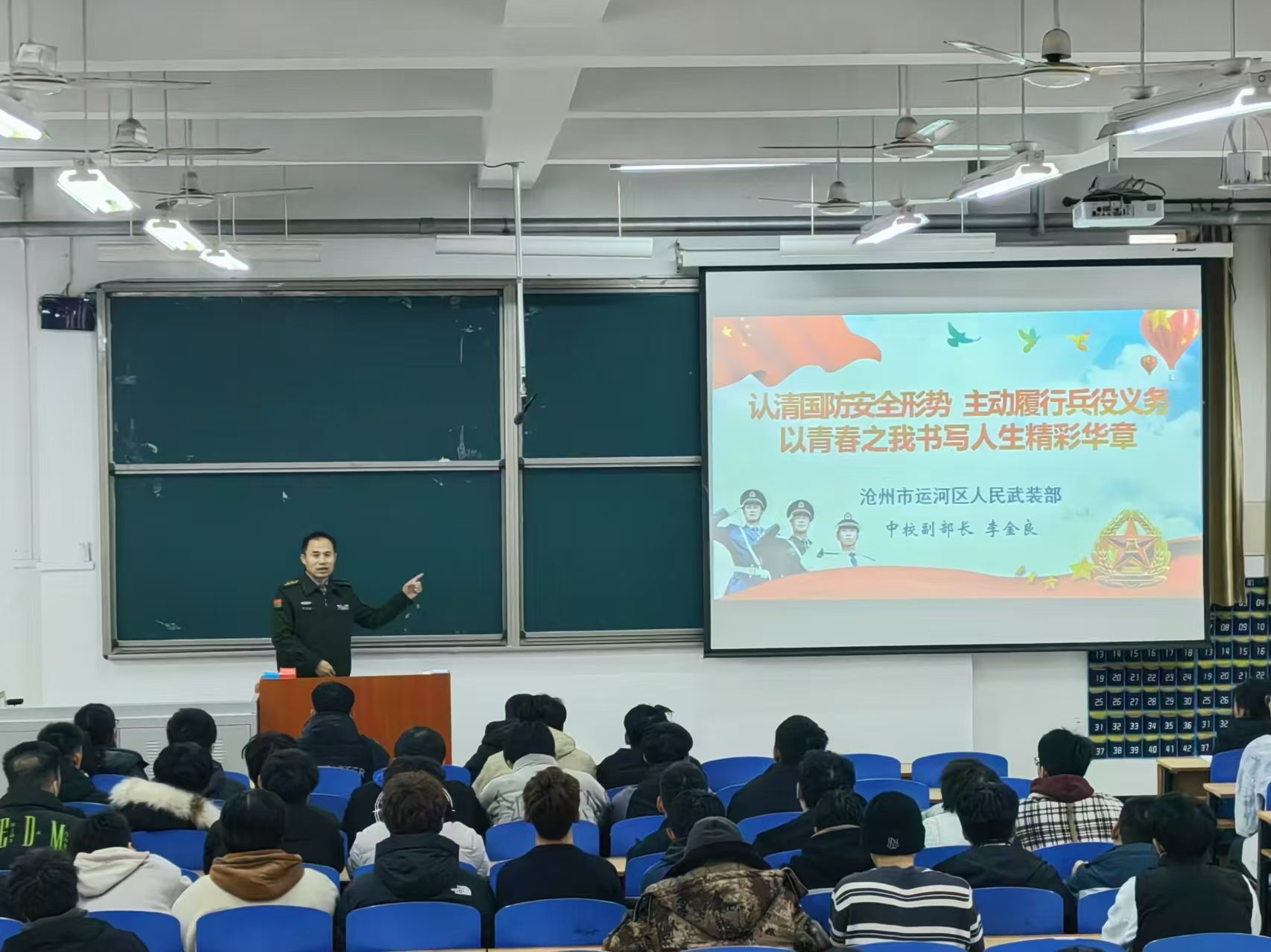 为深入贯彻落实习近平强军思想,宣传国家征兵政策,激发青年大学生参军入伍热情,推动beat365大学生征兵工作提质增效,12月12日,beat365联合运河区人民武装部,举办了2025年春季征兵政策宣讲会。本次活动由运河区人民武装部副部长李金良进行政策宣讲,beat365人民武装部郭健老师主持宣讲会。活动伊始,与会人员共同观看了学校征兵宣传片。随后,李金良为同学们详细介绍了国家征兵政策、军队建设成就以及军人职业发展的广阔前景。他结合自身经历,...