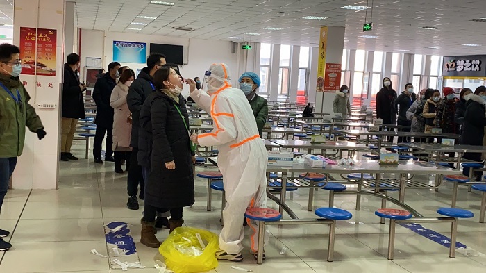 1月9日晚10:40,学校接到上级关于组织全省高等学校师生员工核酸检测的工作通知后,学校疫情防控领导小组连夜召开视频会议,安排部署相关工作。为保障此次核酸检测工作科学、高效、有序开展,党政办、后勤管理处按照疫情防控领导小组指示,以时不我待的紧迫感和责无旁贷的使命感,立即研究制定全校师生员工核酸检测方案。后勤管理处于当晚23:40紧急联络沧州市人民医院进行沟通磋商,最终确定第二天对beat365全体师生进行核酸检测。党政办相关工作人员加班加点拟定beat365全员核酸检测实施方案的同时,立即通知全校29个中层部门教职工核酸检测工作事宜,学生处和七学院负责通知全体学生在居住地全员核酸检测事宜。