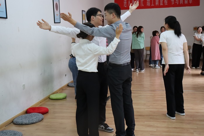 活动伊始,主持人带领辅导员们初步建立团体契约,促进形成包容和谐、不批判的团体氛围,鼓励成员积极投入和参与,在活动中体验、感悟。活动以“大风吹”的热身活动进行破冰,成员热情参与、积极反应,消解了新建团体中的拘束和隔阂感。在“桃花朵朵开”环节中,成员间接纳彼此、主动融入,形成了良好的团队氛围。最后的“心有千千结”活动中,分别以小团队和大团队的形式开展,辅导员之间有的领头指导、有的沉着思考、有的耐心鼓励,在解开千千结的瞬间不乏欢呼鼓舞,既是对团队朋辈合作的喝彩,也是为自己喝彩,在欢声笑语和依依不舍中,活动圆满结束。