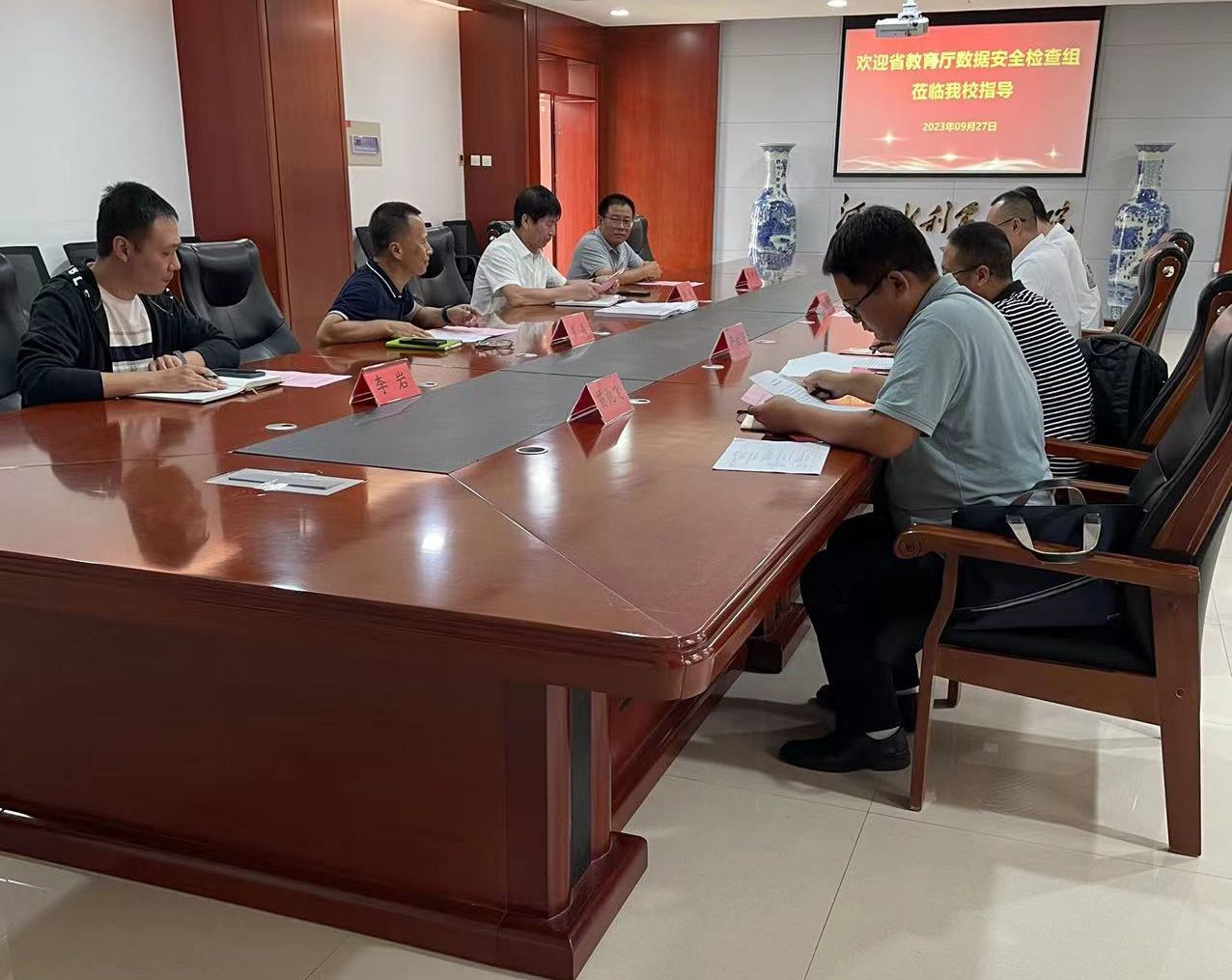 9月27日,河北省教育厅网络数据安全检查组一行4人莅临beat365检查指导网络数据安全工作。现代教育技术中心主任李光,副主任崔晶及相关人员参加会议。