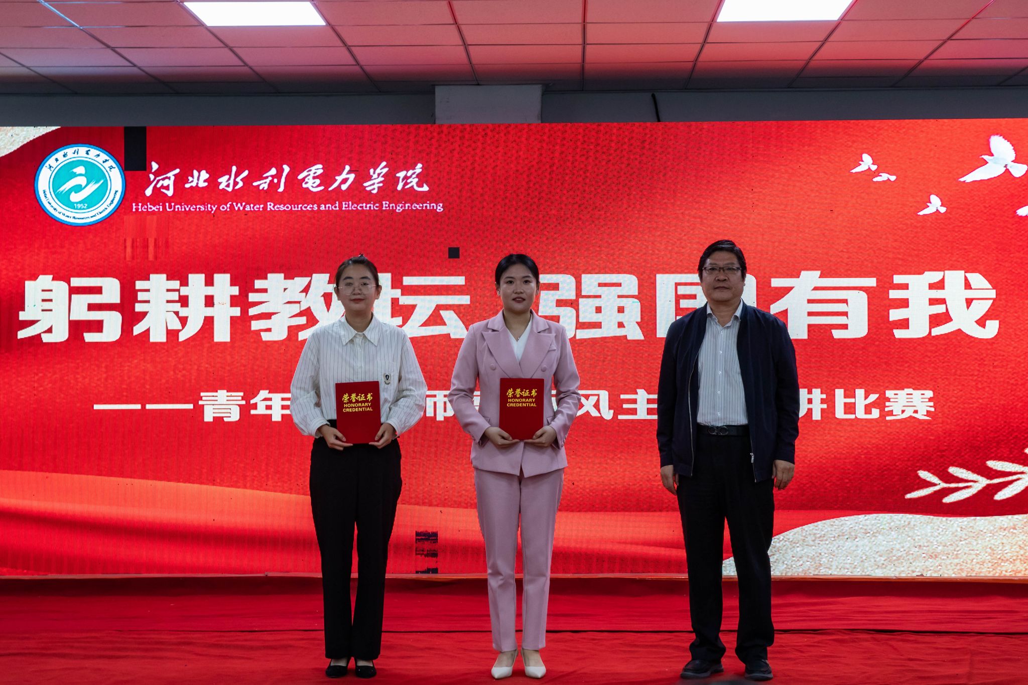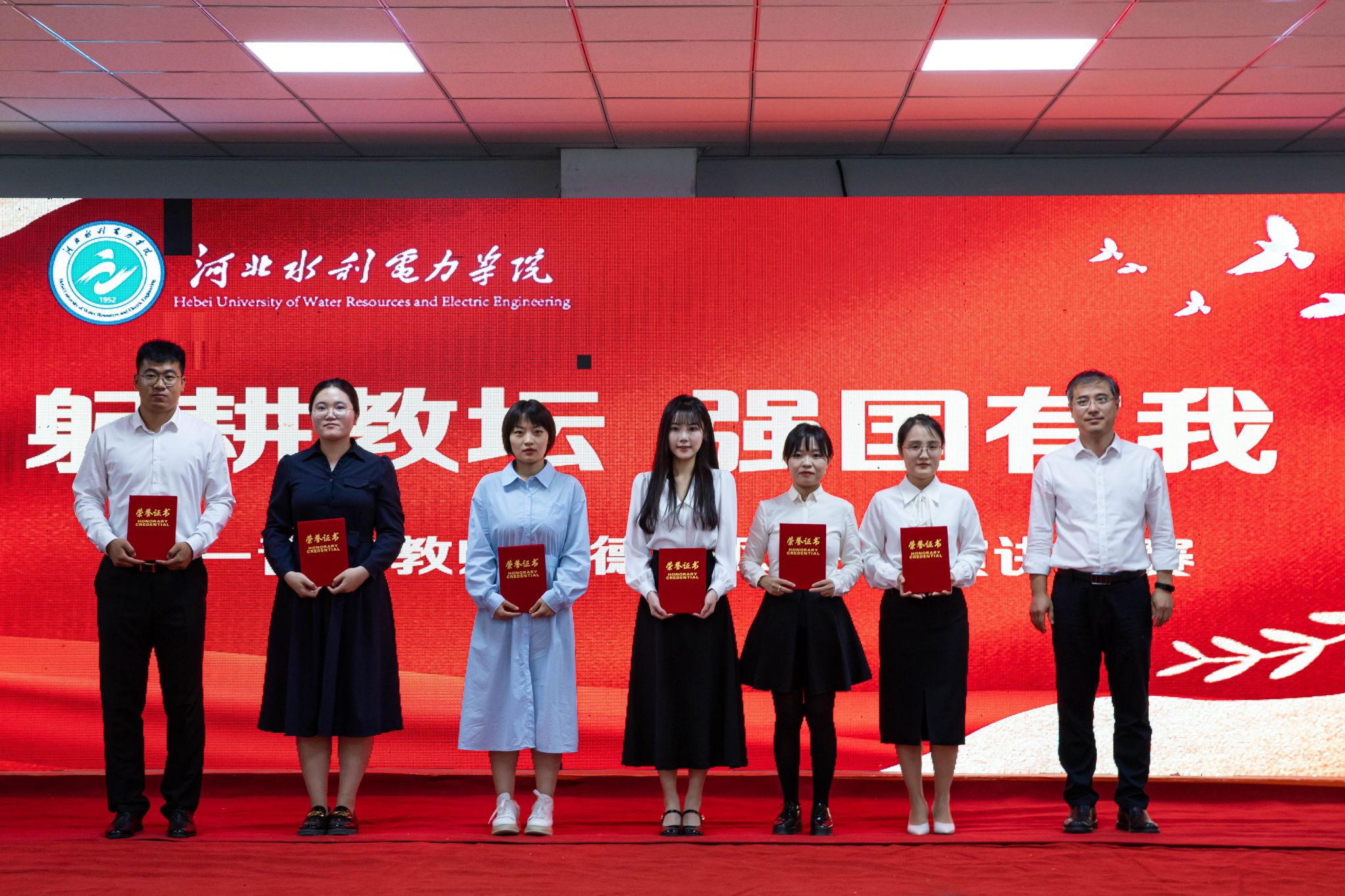 经过激烈角逐,经济贸易系刘璐斩获一等奖;经济贸易系周游、基础部尹梦田获二等奖;电力工程系于雪、机械工程系张浩、交通工程系时秀莲获三等奖;水利工程系刘璐、体育教学部刘士继、马克思主义学院朱瑞雪、土木工程系郭萌、计算机系沙潇、电气自动化系张春茜荣获优秀奖。