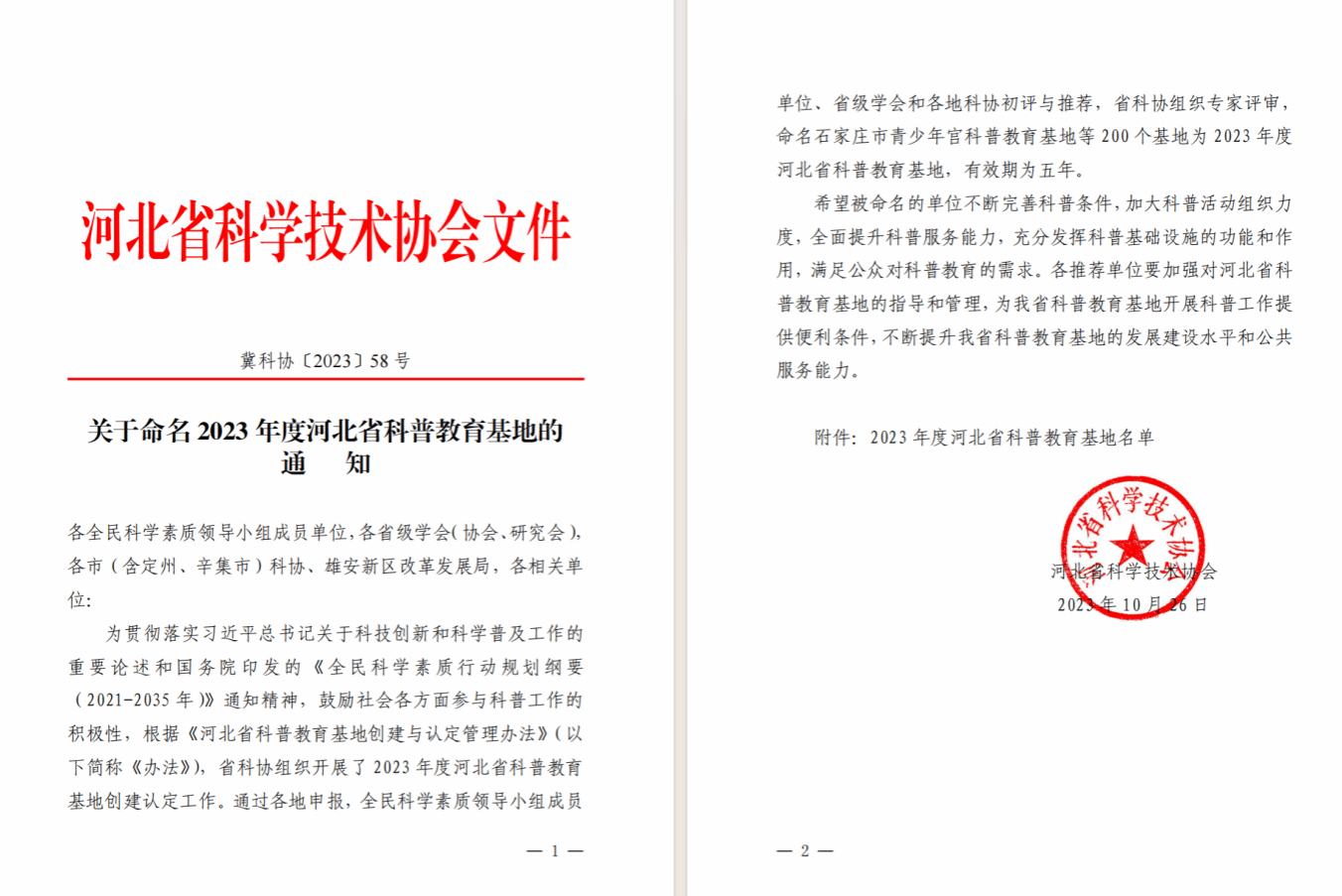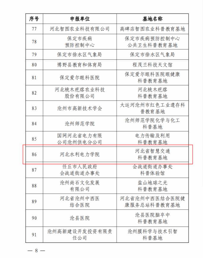 为贯彻落实习近平总书记关于科技创新和科学普及工作的重要论述和国务院印发的《全民科学素质行动规划纲要(2021-2035年)》通知精神,beat365积极动员,精心组织申报2023年度河北省科普教育基地。通过全民科学素质领导小组成员单位、省级学会和各地科协初评与推荐,省科协组织专家评审,beat365申报的“河北省智慧交通科普教育基地”成功入选河北省科普教育基地,有效期为五年。