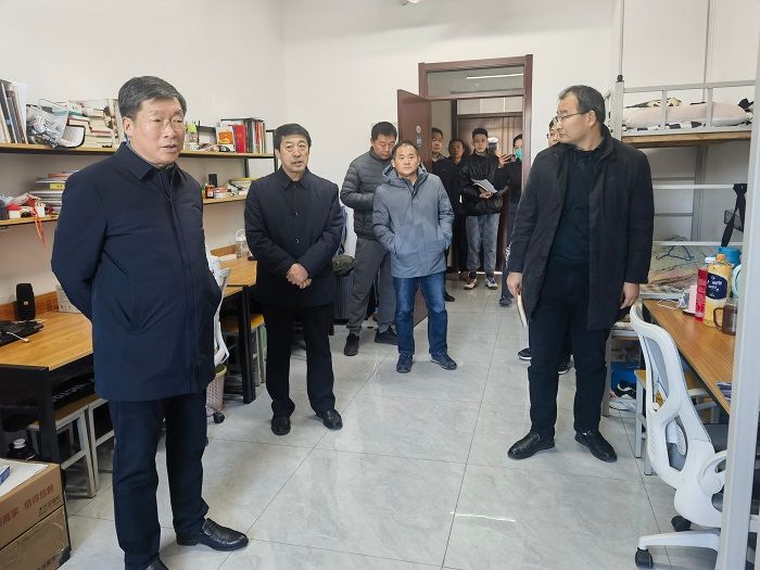 11月29日下午,副校长于振海到高新区校区开展现场调研。党政办主任王德强、后勤处处长周学增、安全处处长欧仁辉、高新区管委会常务副主任曹青松及计算机系党总支书记崔炳德等陪同调研。
