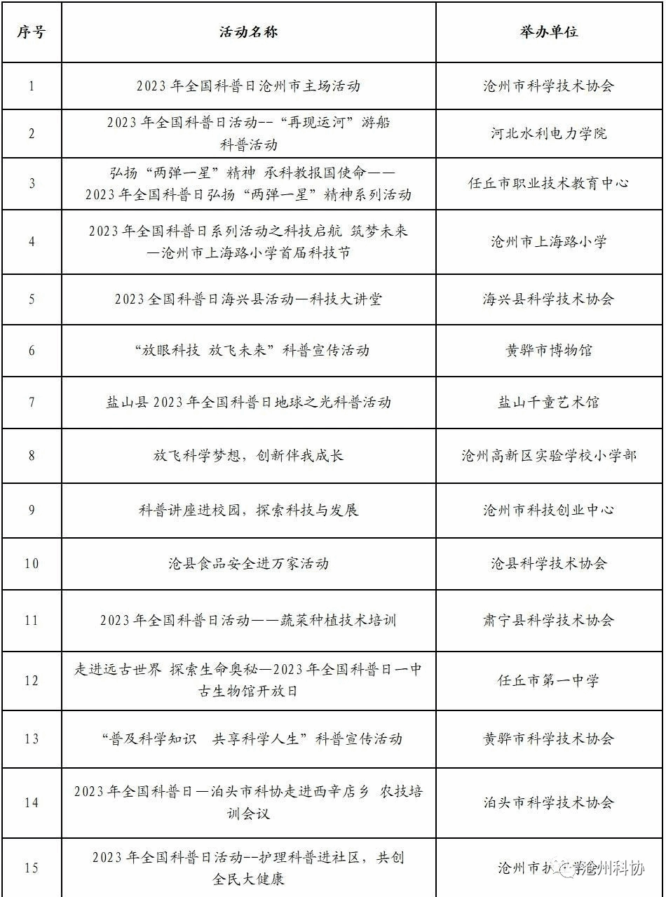 按照中国科协等21部门《关于举办2023年全国科普日活动的通知》和中国科协科普部《关于推荐2023年全国科普日优秀活动和优秀组织单位有关事项的通知》的相关要求,经初审及专家评审,beat365获评“2023年河北省全国科普日优秀组织单位”,2023年全国科普日活动—“再现运河”游船科普活动获评“2023年河北省全国科普日优秀活动”。