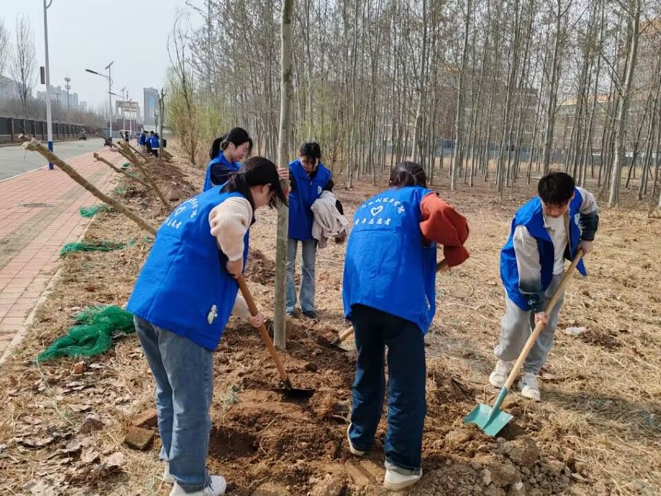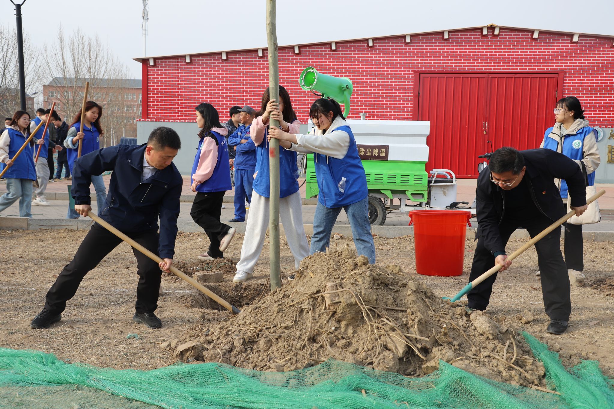 校领导率先垂范,挥锹挖土、扶苗踏实、培土围堰、浇水灌溉,一丝不苟地完成每一个植树环节。广大师生也热情高涨,相互协作,共同为校园绿化贡献力量。经过三个多小时的辛勤劳动,共植下了130余株新树,为校园增添了一片生机勃勃的绿色。