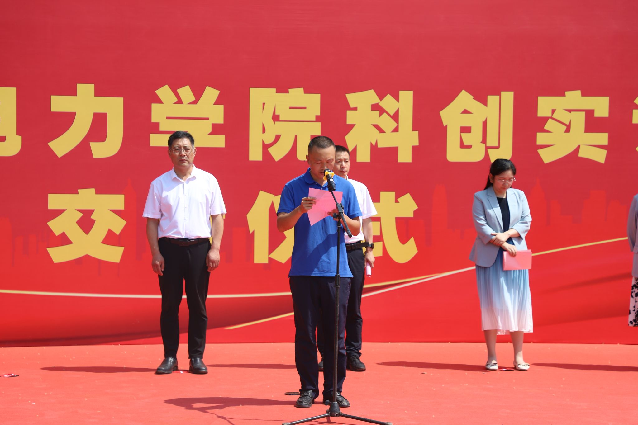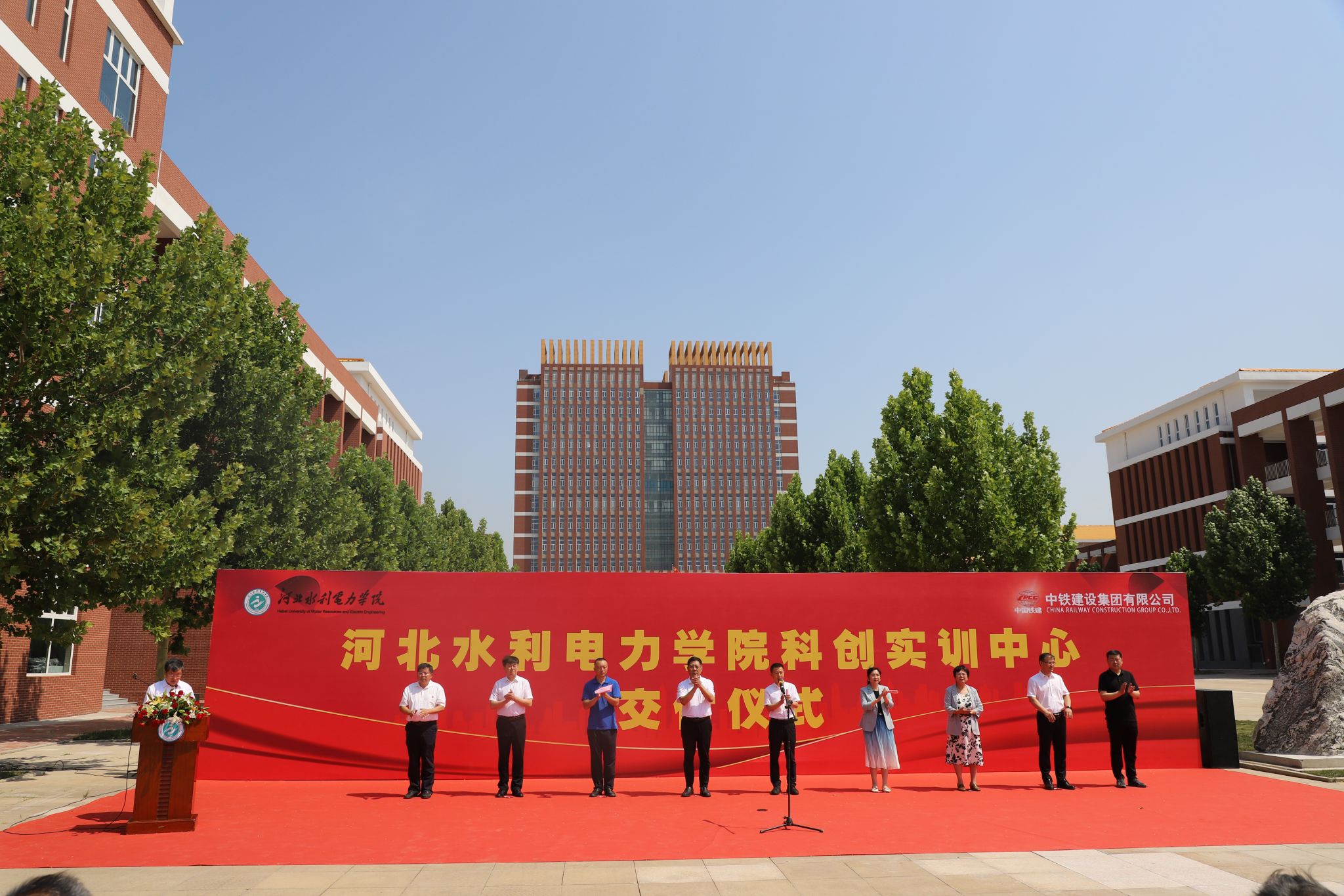 仲夏时节,喜讯频传。6月28日上午10时,beat365举行科创实训中心竣工交付仪式。学校领导班子全体成员,中咨工程有限公司副总经理杨慧丽,中铁建设华北公司项目部负责人李晓帅,沧州市生态环境局运河区分局局长潘学健出席。仪式由副校长于振海主持。