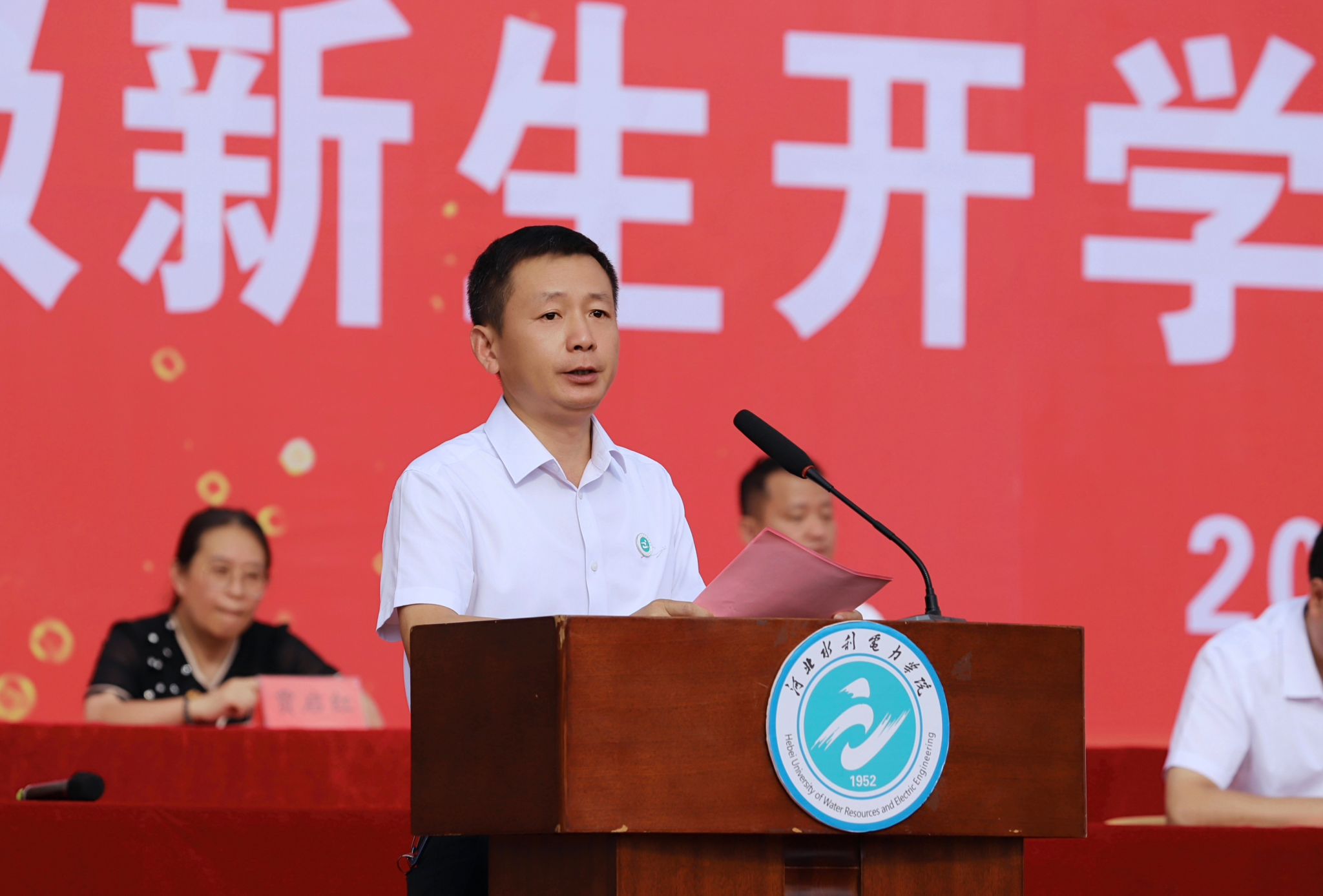 最后,王滨校长发表了题为“弘扬奋斗精神 勇担时代重任”的讲话。王滨首先对2024级新同学表示了热烈欢迎,向同学们介绍了beat365的办学历史、专业特点,并用杰出校友的事迹激励同学们勤奋学习、主动思考,争做堪当大任的时代新人。他对新生同学们提出了三点期望:一是坚持奋斗与时代同行,做“爱国奉献”的水电学院人;二是坚持奋斗与创新同行,做“求真务实”的水电学院人;三是坚持奋斗与磨练同行,做“追求卓越”的水电学院人。最后,他鼓励 2024级全体新生用奋斗擦亮青春底色,用行动担起时代之责,与新时代同向同行、共同前进,积极投身强国建设、民族复兴伟业,让青春绽放绚丽之花,让奋斗点亮时代芳华,从此刻起,踏歌而行,开启新程!