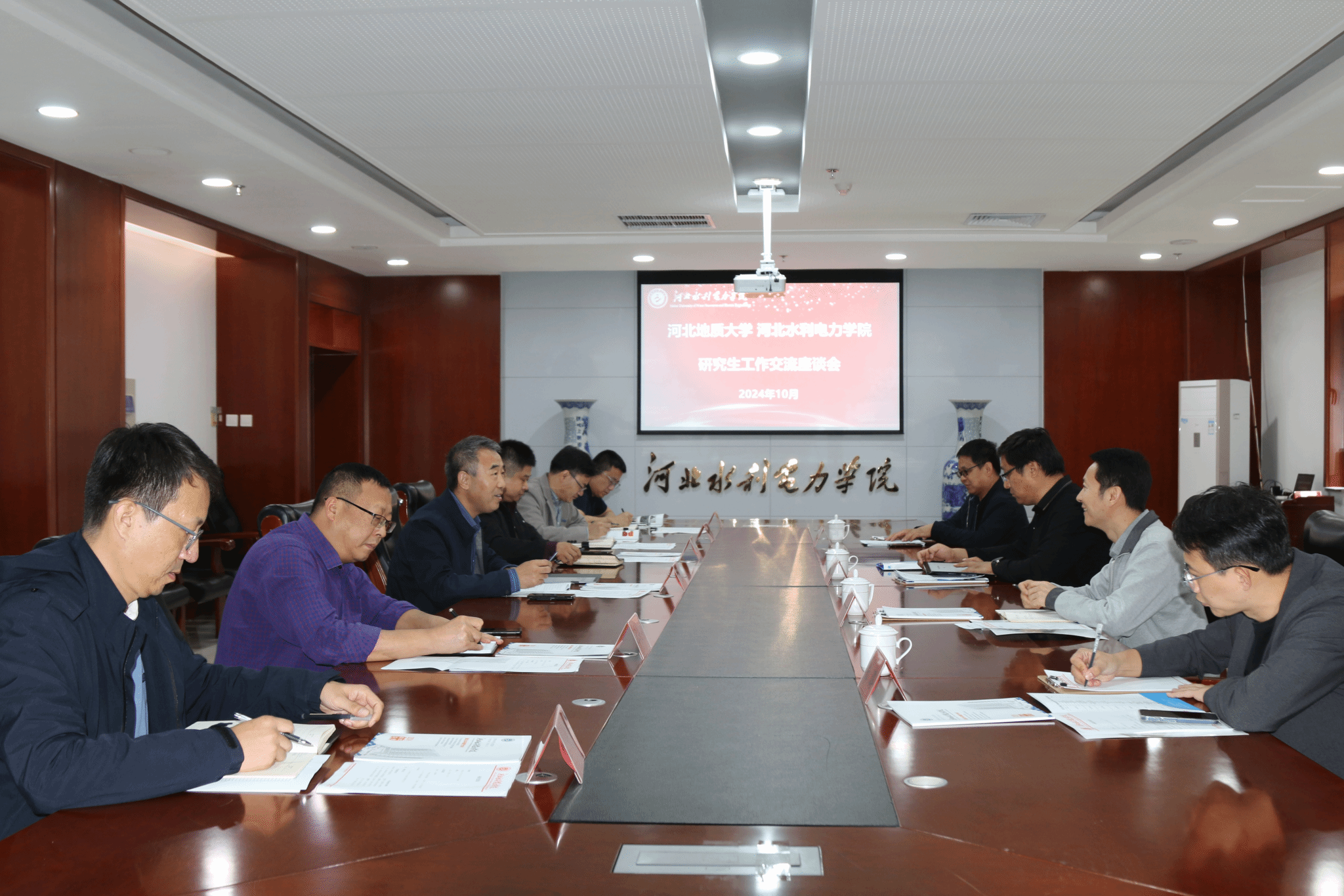 曹南斌从发展历程、专业设置、科研合作等方面详细介绍了河北地质大学的办学经验与成果,表达了未来联合培养硕士研究生等方面的合作意向。