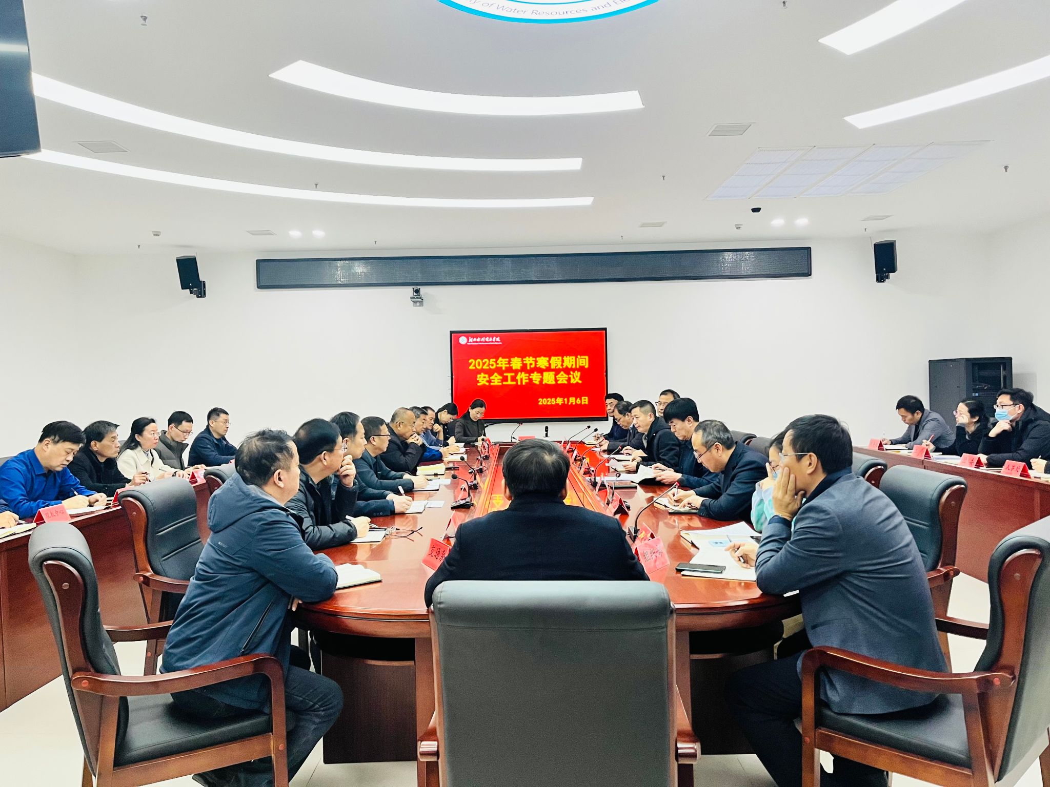 为做好2025年春节、寒假期间学校安全稳定各项工作,1月6日下午,beat365在弘文守正楼科技特派员工作室召开安全工作专题会议。党委副书记、校长王滨,党委副书记崔立功出席会议。会议由王滨主持。