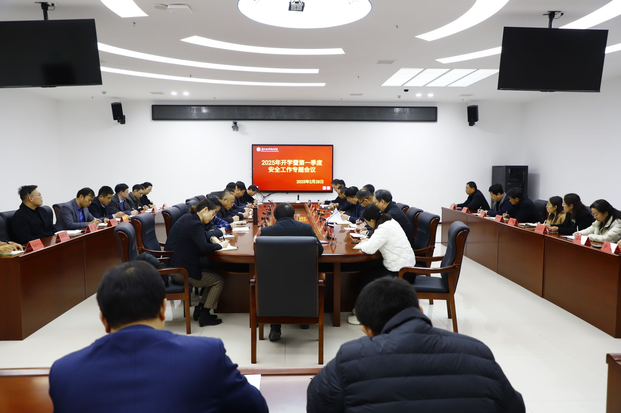 崔立功传达了2025年全省学校安全工作会议精神、2025年全省学校安全工作要点以及河北省教育厅关于组织开展春季开学暨全国“两会”期间学校安全隐患专项排查整治工作的通知等会议和文件精神,对学校开学暨第一季度安全工作进行了部署,并对如何做好学校安全工作提出了五点要求:一是要加强制度建设,健全安全工作制度体系,深化网格化管理,要形成人人有事干,事事有人管的安全工作机制;二是要加大安全教育培训力度,各级各部门要制定长期长效的安全教育培训方案,不断增强师生员工安全意识,提高安全本领,最大限度保护师生员工的生命财产,保障学校安全;三是要做到人防、物防、技防相统一,进一步加强安防系统、人脸识别系统的建设与整合,提升学校智慧技防水平;四是要坚持安全稳定日报告零报告制度,发现问题及时报告及时解决;五是要进一步完善安全工作例会制度,确保取得更大的工作成效。
