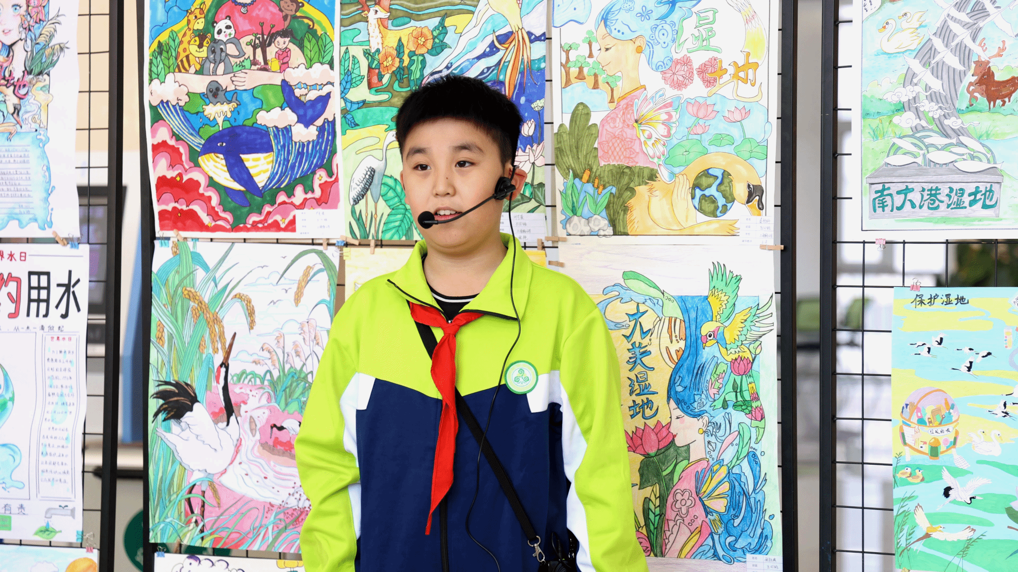 在绘画展览区,陈列了来自两校学生的50余幅精美作品。上海路小学的学生刘承翰、姚沛岑、杨程乔以童真的视角,用画笔描绘出了对蓝色碳汇与滨海生态的美好愿景。水利工程系的学生房明玥、王浩杨则结合所学专业知识,从节约水资源、保护水生态、共筑水安全等角度入手,分享了他们的创作理念,展现了青年一代对滨海生态保护的深刻思考和感悟。