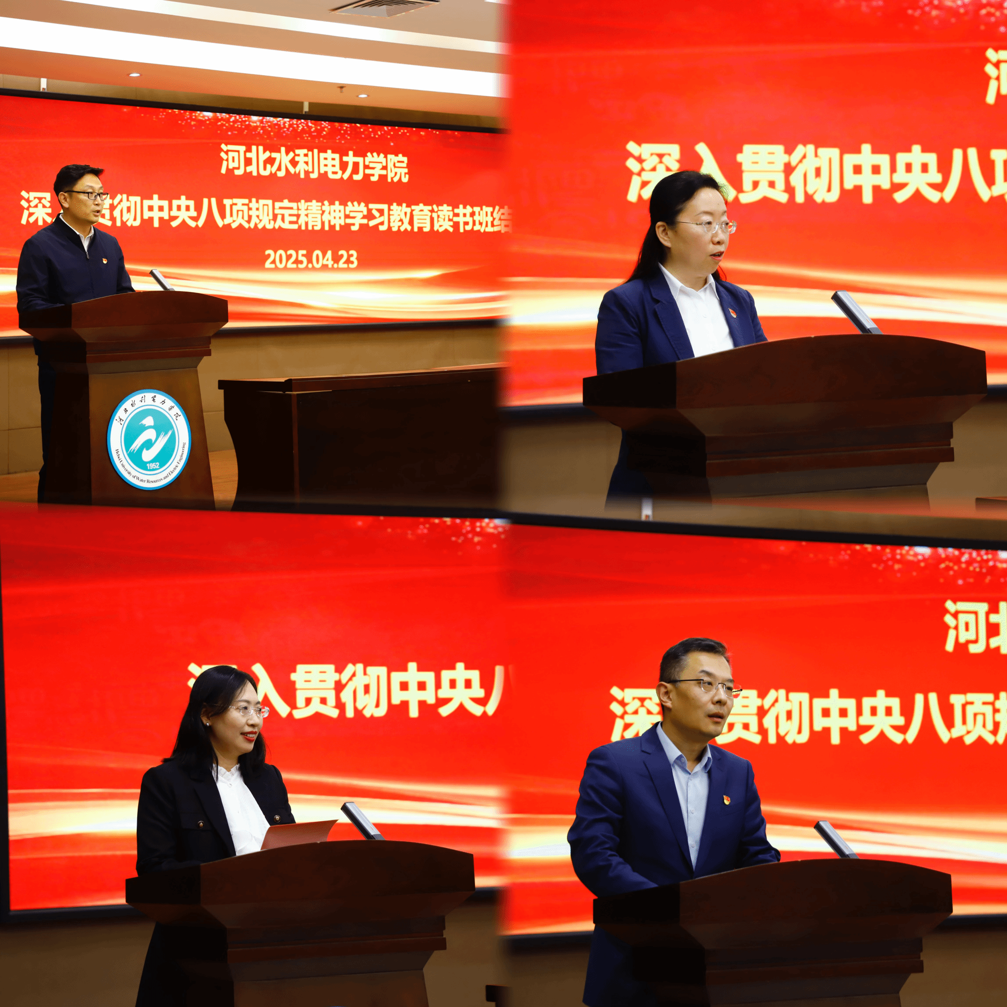 机关党委学员代表庞进、直属党委学员代表王侠、水利工程系党委学员代表史琳、交通工程系党委学员代表张勇围绕主题分别作交流发言。