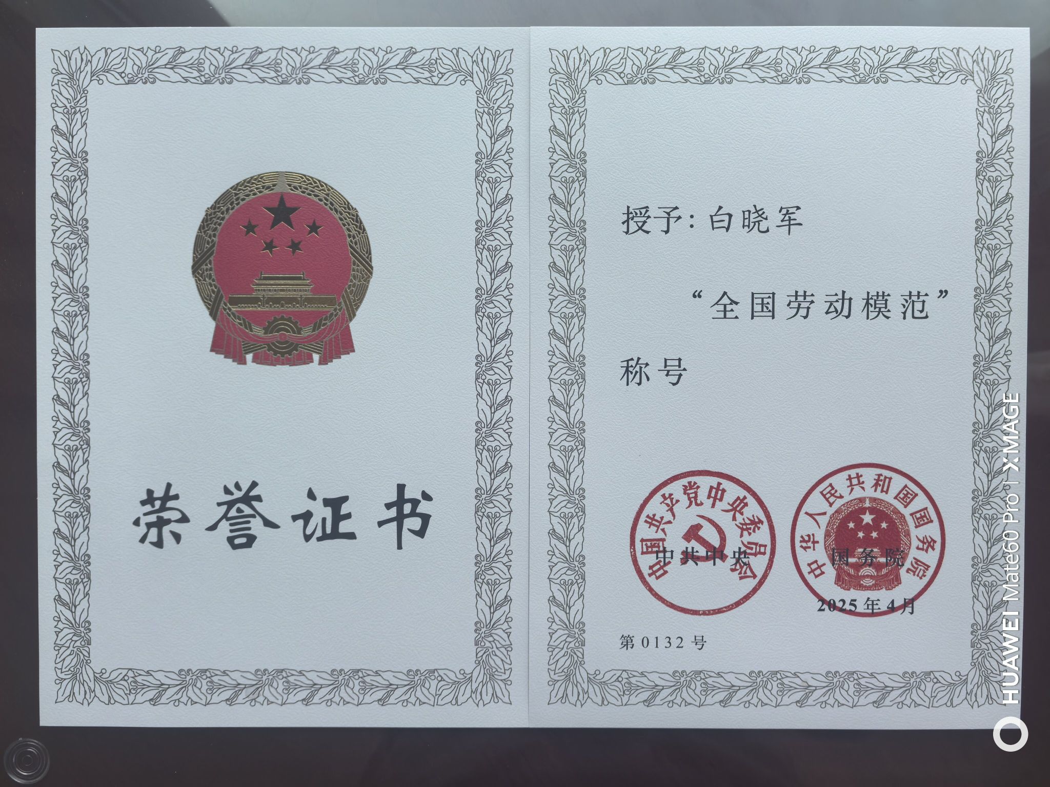 白晓军经常说:“做建筑要有钢筋般的铁骨,更要有混凝土般的韧性。”他近三十年的职业生涯,就是不断坚守和创新的奋斗史,他以一颗以“工地为家、技术为魂”的赤诚之心,带领团队攻克众多行业难题。一项又一项的荣誉,是对“匠心”的最好见证:2023年成为第六届河北省燕赵黄金台聚才计划拔尖人才并斩获中国建筑最高荣誉“鲁班奖”、2024年被河北省人民政府授予“河北省突出贡献技师”“河北省劳动模范”荣誉称号、2025年成为享受国务院特殊津贴专家并荣膺“全国劳动模范”荣誉称号…此外,22项省优工程、11项河北省建设行业科技进步二等奖、6项三等奖、15项国家专利、2项发明专利、1项国家优质工程奖、3项住建部绿色科技示范项目…这些熠熠生辉的成就背后,是他30年如一日的坚守。更令人敬佩的是,他始终践行“一人行百步不如百人行一步”的理念,通过带徒弟、回母校担任客座教授等方式,将一线经验转化为教学案例,为企业培养了数十名技术骨干,为年轻的学弟学妹们讲水院精神、播撒爱岗敬业的火种。