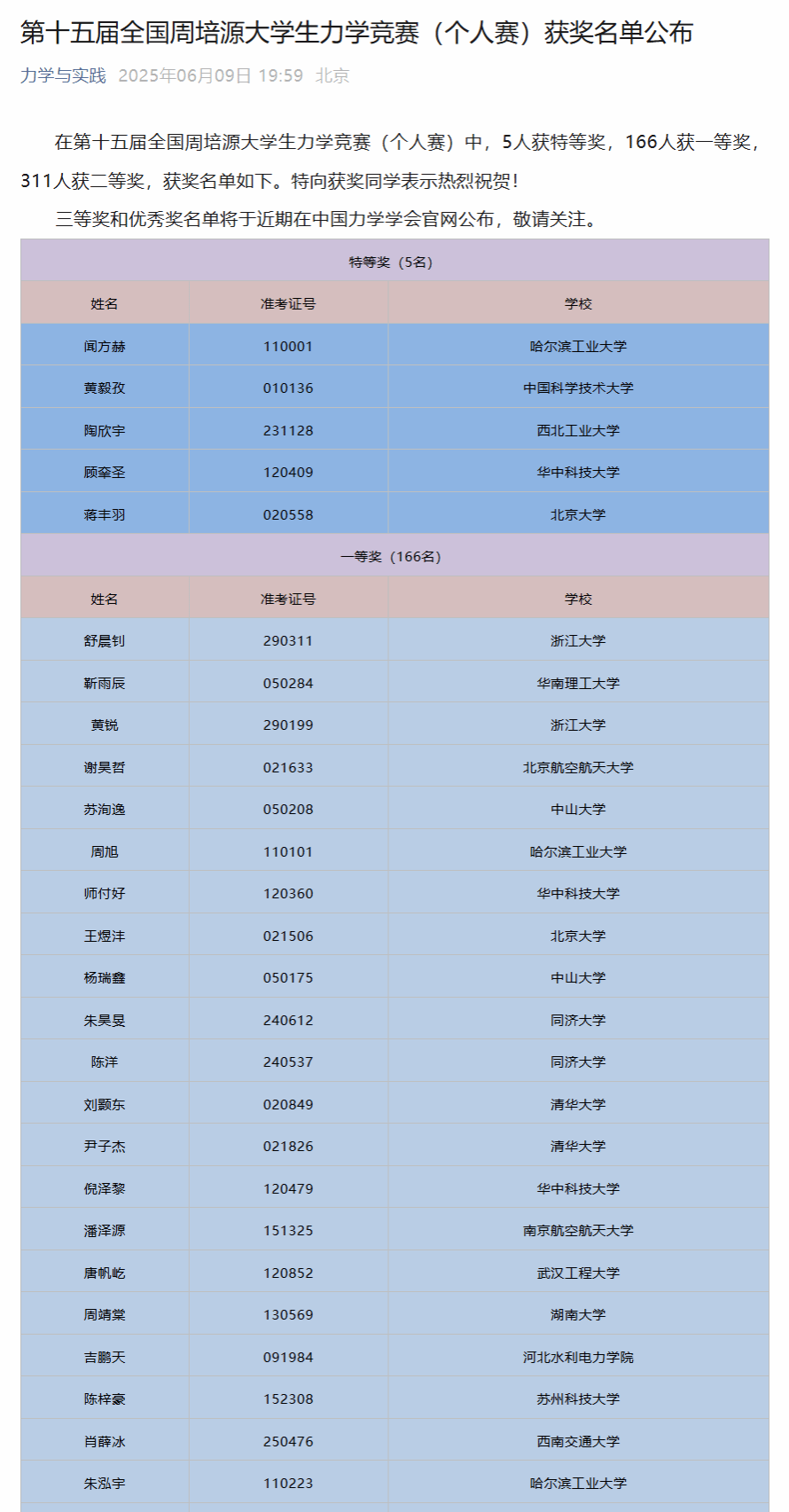 近日,第十五届全国周培源大学生力学竞赛结果正式揭晓。beat365学子表现卓越,首次摘得全国一等奖桂冠,取得历史性突破,彰显了学校基础力学教学的扎实功底,呈现了beat365学生创新实践教育的硕果。