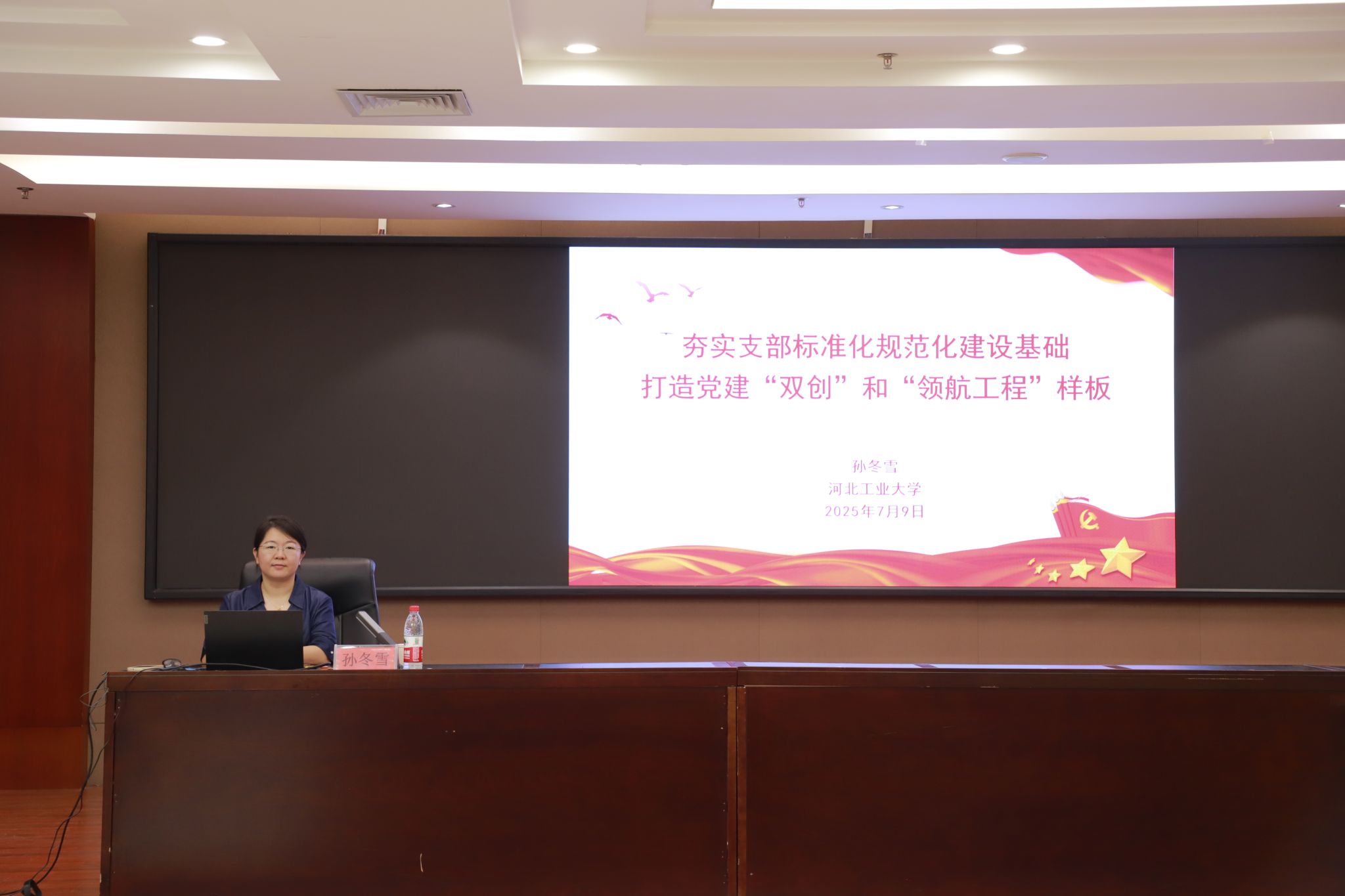 全国样板支部支部书记、河北工业大学党委组织部科长孙冬雪作了题为“夯实支部标准化规范化建设基础,打造党建双创和领航工程样板”的讲座,聚焦党支部建设的关键环节,系统解析了“党支部标准化规范化建设”“党员发展与教育管理”“三会一课”等组织生活制度落实以及“党建双创典型经验”四个核心内容。讲座深入分享了打造高质量样板支部的实践路径与宝贵经验,为提升beat365基层党建工作科学化、规范化水平提供了坚实的理论支撑和实践范例。