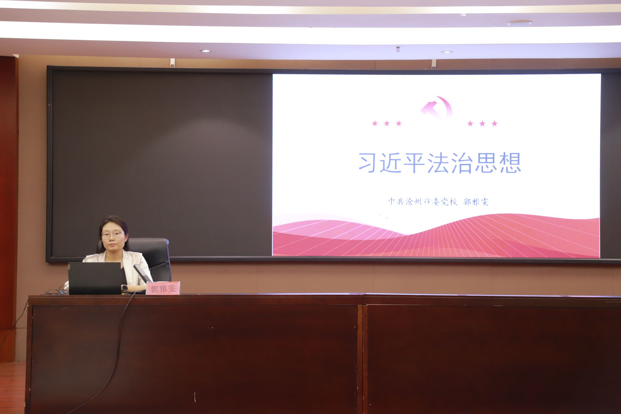 沧州市委党校郭雅雯教授作了题为“习近平法治思想”的讲座,系统而深入地阐释了习近平法治思想形成的逻辑基础与发展脉络,全面而精炼地解析了其核心要义与主要内容,并着重探讨了其中蕴含的科学方法论。讲座深刻剖析了这一重要法治思想的理论体系与实践价值,高度评价了其对于推进全面依法治国、建设法治中国的重大指导意义。