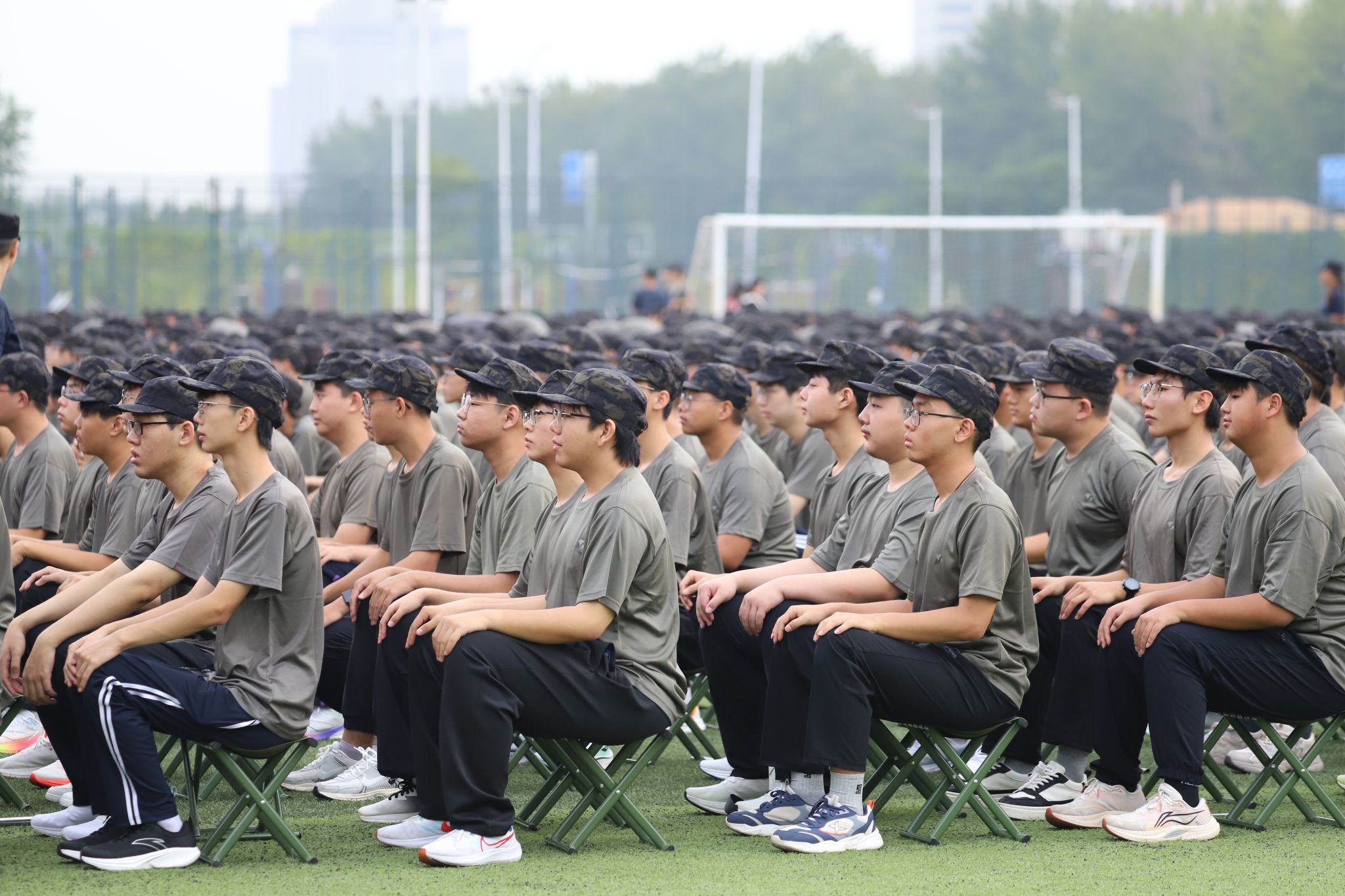 军训教官代表水利工程系水利水电工程202206班孔嘉硕代表全体教官作表态发言,表示必将高标准完成2025级新生军训任务。