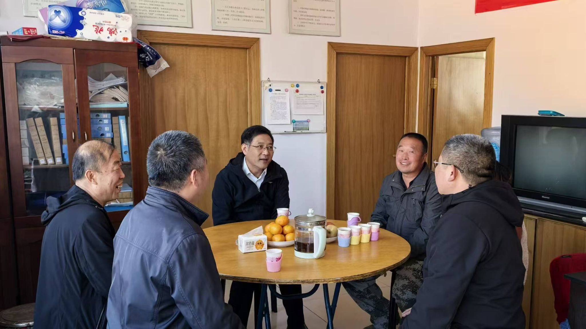 张效松代表学校党委对乡党委、乡政府和村“两委”一直以来对工作队的支持和帮助表示了感谢,对驻村工作队的工作和生活情况进行了详细了解。他要求工作队员认真做好迎检准备工作,继续发挥自身优势,做好产业帮扶,为马栅子村乡村振兴做出更大贡献。
