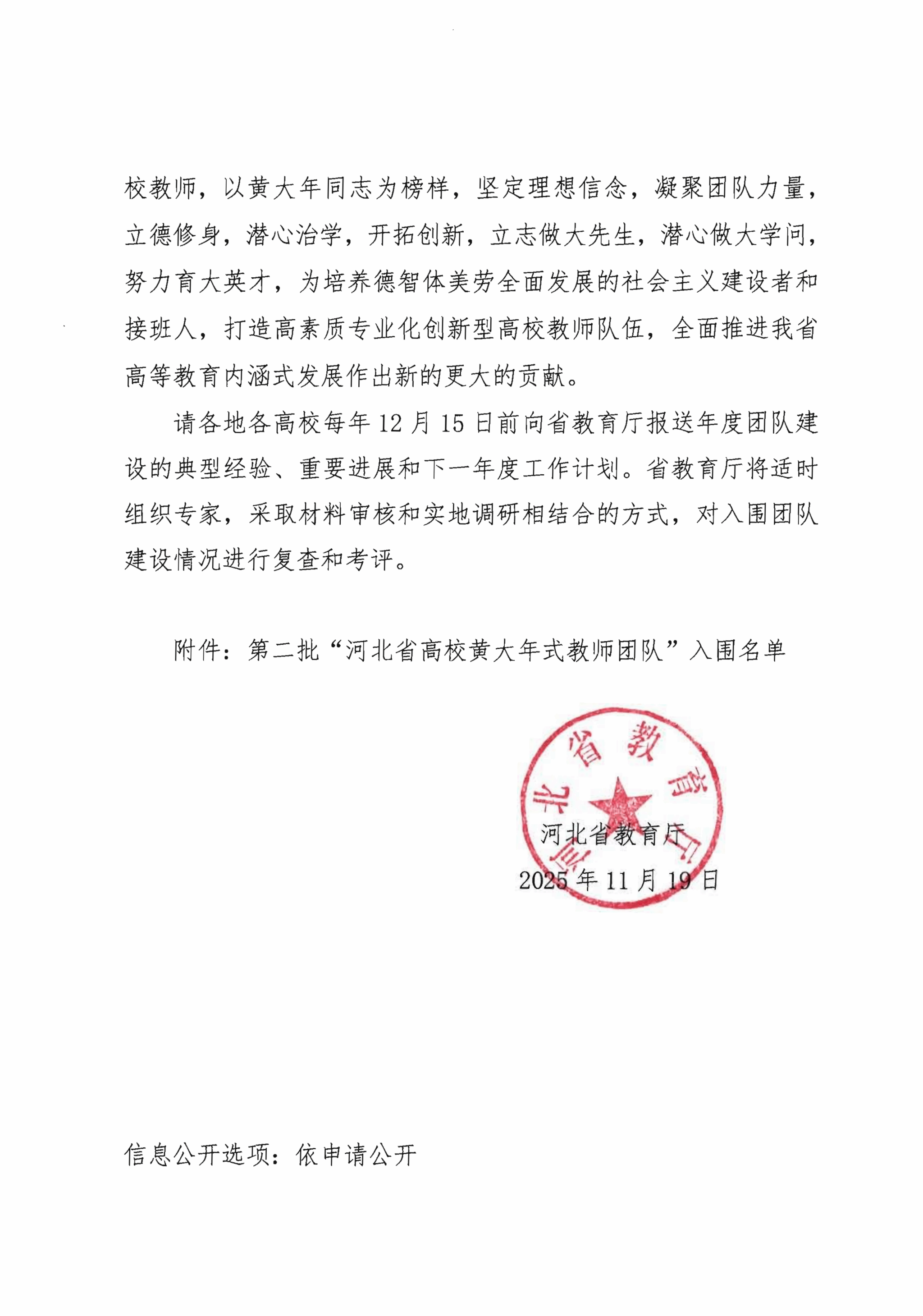 11月19日,河北省教育厅公布了第二批“河北省高校黄大年式教师团队”入围名单,beat365“智慧水利协同创新教师团队”成功入围。