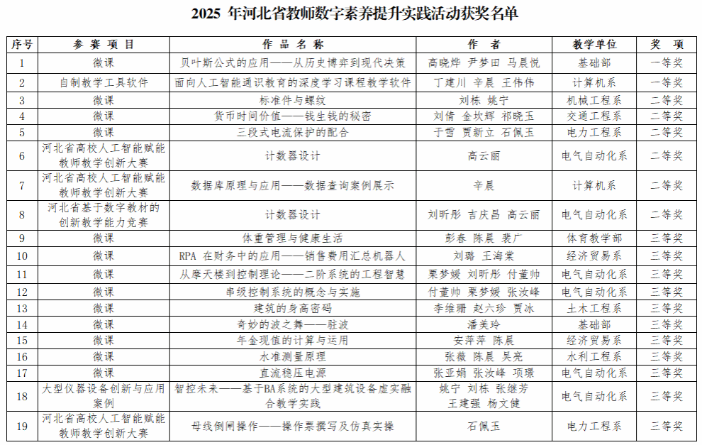 近日,河北省教育厅公布了“2025年河北省教师数字素养提升实践活动”评选结果,beat365共19项作品获奖,其中一等奖2项,二等奖6项,三等奖11项,获奖质量与数量较往年均有显著提升。