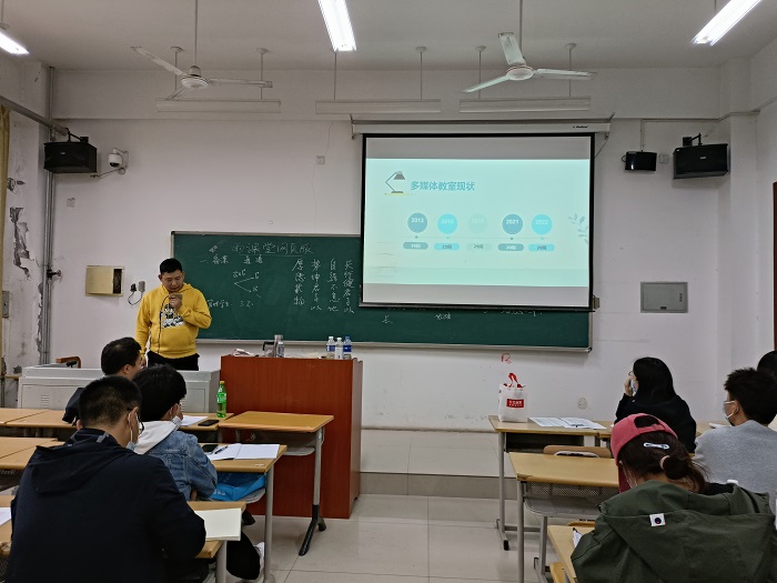 现代教育中心田志民老师为大家带来了专题讲座第三讲—多媒体教学设备的使用。田老师从现代教育技术的发展、我院多媒体教室的现状、多媒体教室使用流程以及常见问题进行了讲解,老师们认真学习、铭记于心,为今后熟练使用多媒体教学设备、顺利完成教学任务打下基础。