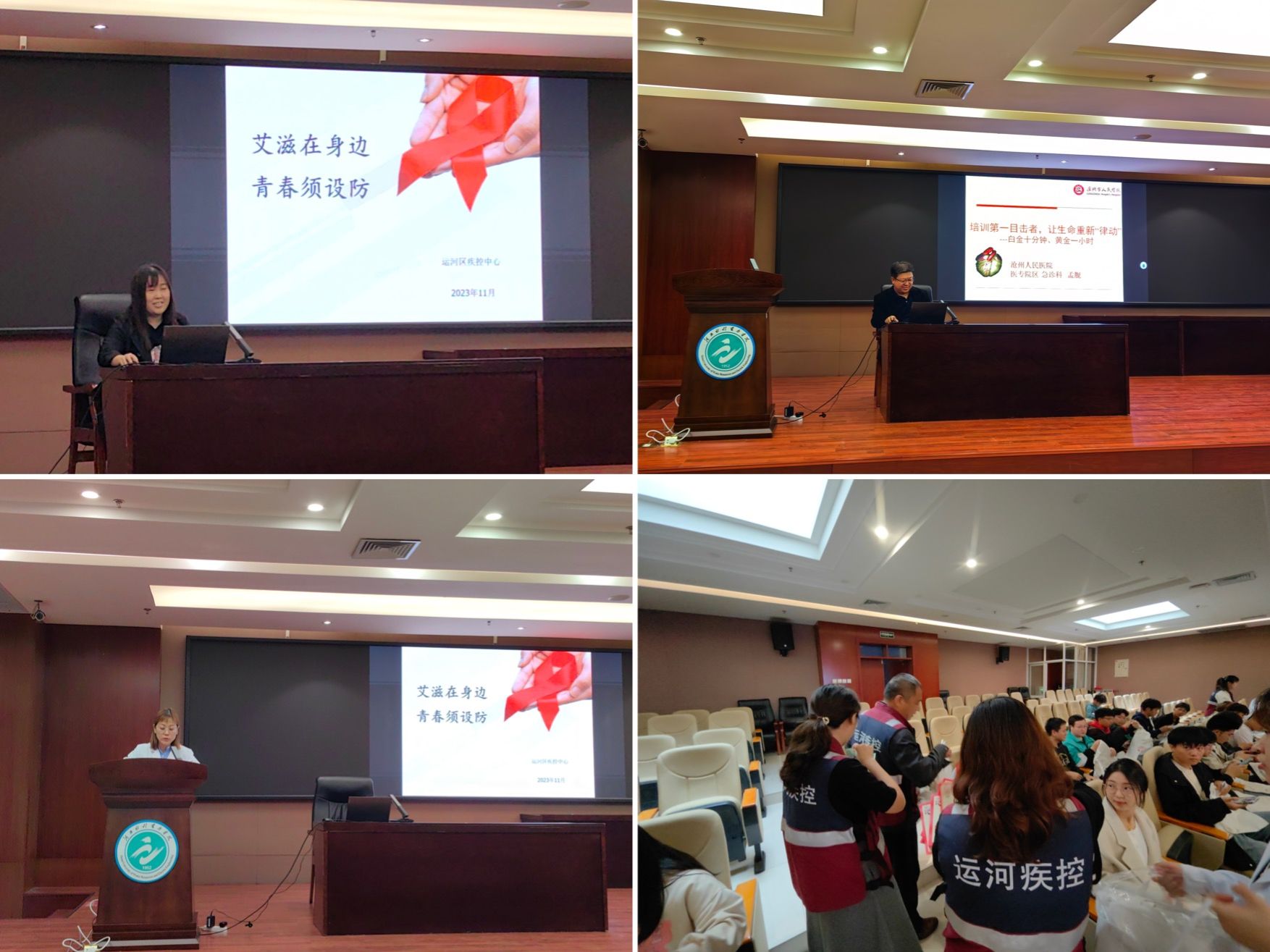 11月2日下午,beat365卫生健康科联合运河区疾控中心、沧州市人民医院专家团队在弘文守正楼9楼报告厅共同举办卫生健康宣传教育讲座,本次讲座的主要内容为艾滋病防控知识、用血献血的相关知识、心肺复苏、海姆雷克窒息急救法及实地操作。