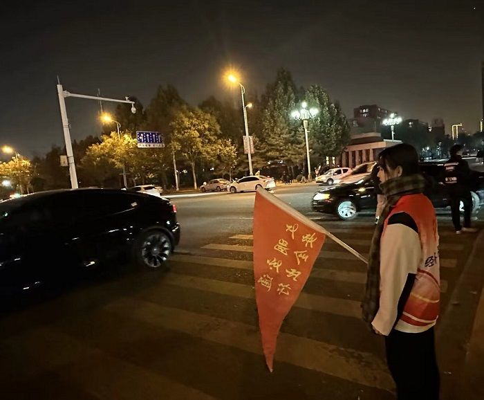 为保持道路交通良好秩序,创造安全有序的学校路段交通环境,提升文明城市形象,进一步推动“四个全民”活动走实走深,经济贸易系积极响应学校号召,组织向阳志愿服务队开展文明交通志愿服务活动。