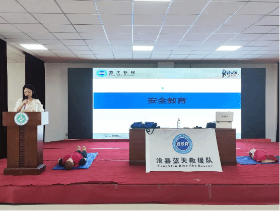 讲座中,救援队老师从防溺水安全常识、溺水自救方法及科学、正确施救溺水人员等方面,通过案例分析、互动问答等方式,讲解了溺水时的常见表现及正确的自救方法,现场演示讲授溺水后的科学急救措施,使学生掌握了防溺水的“六不准”“四牢记”“两学会”,增强了溺水防范意识,提高了自救互救能力。