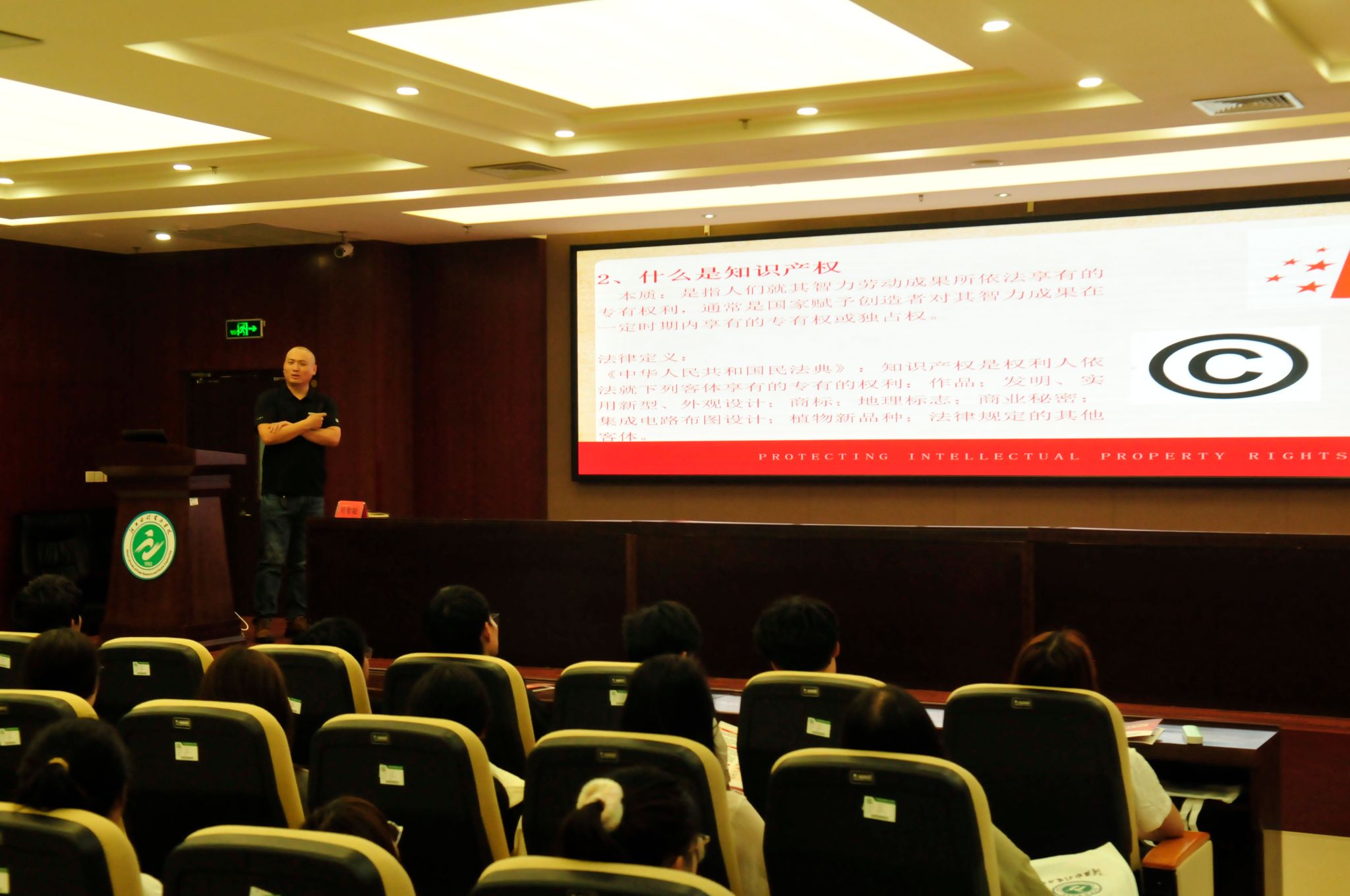 4月26日下午,在第24个世界知识产权日之际,beat365在弘文守正楼9楼学术报告厅举行“知识产权专题讲座”,邀请沧州市华阳知识产权代理有限公司资深专家刘智聪老师主讲,100余名师生参加此次活动。