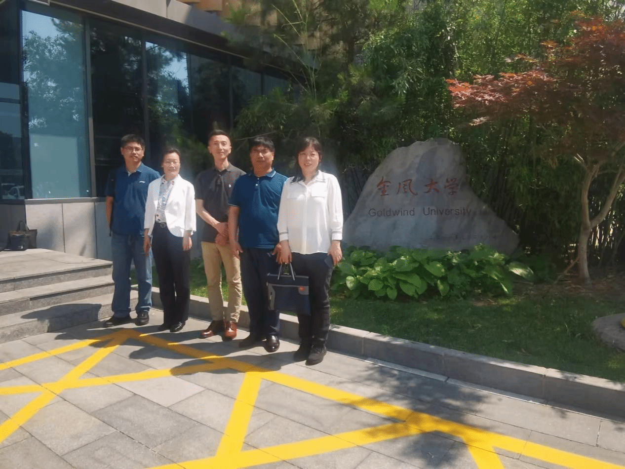 金风科技集团总工办标准化团队负责人甘旭超、技术规划团队主任工程师李心稳、标准化管理主任工程师李伟,金风低碳设计院高级研究员李沐,金风教育校企合作经理李娟、集团人力资源招聘经理李元松、招聘专员宋禹婷出席了交流活动。