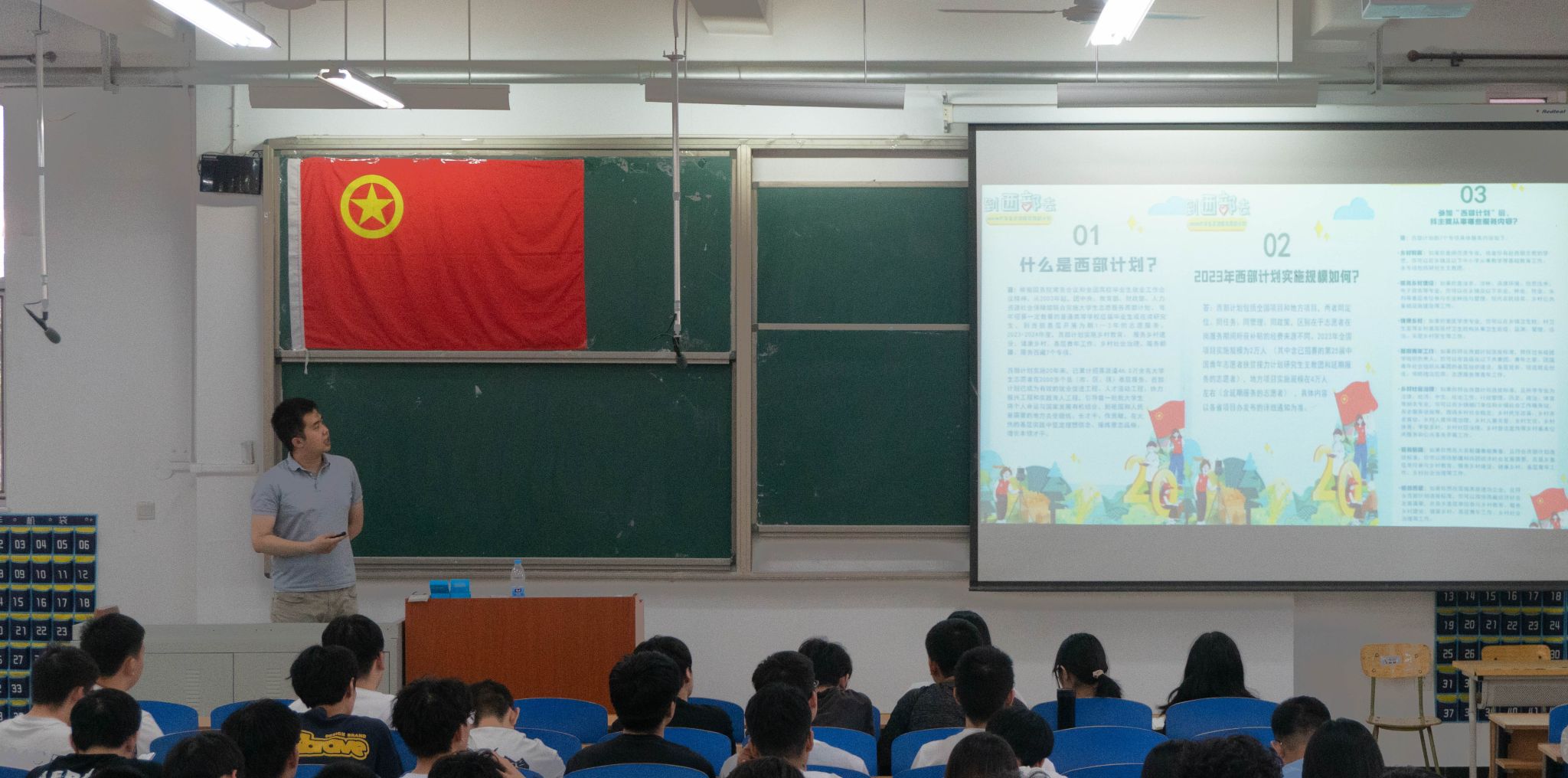 团课上,机械工程系党总支副书记杨学智以“百年团史与青年奋斗”为主题,以青年团的三个主要发展阶段为切入点,从1920年8月社会主义青年团在上海的建立,到1925年1月召开的中国社会主义青年团第三次全国代表大会上“中国共产主义青年团”名字的确定,到现在党的十一届三中全会之后,共青团跟着党走上改革开放道路,焕发新的生机。一百年来,中国共产党领导中华民族复兴伟业劈波斩浪、壮丽远航,中国共青团团结带领一代代中国青年奋勇争先,在党的事业和民族复兴征程中,书写了无上的青春荣光。