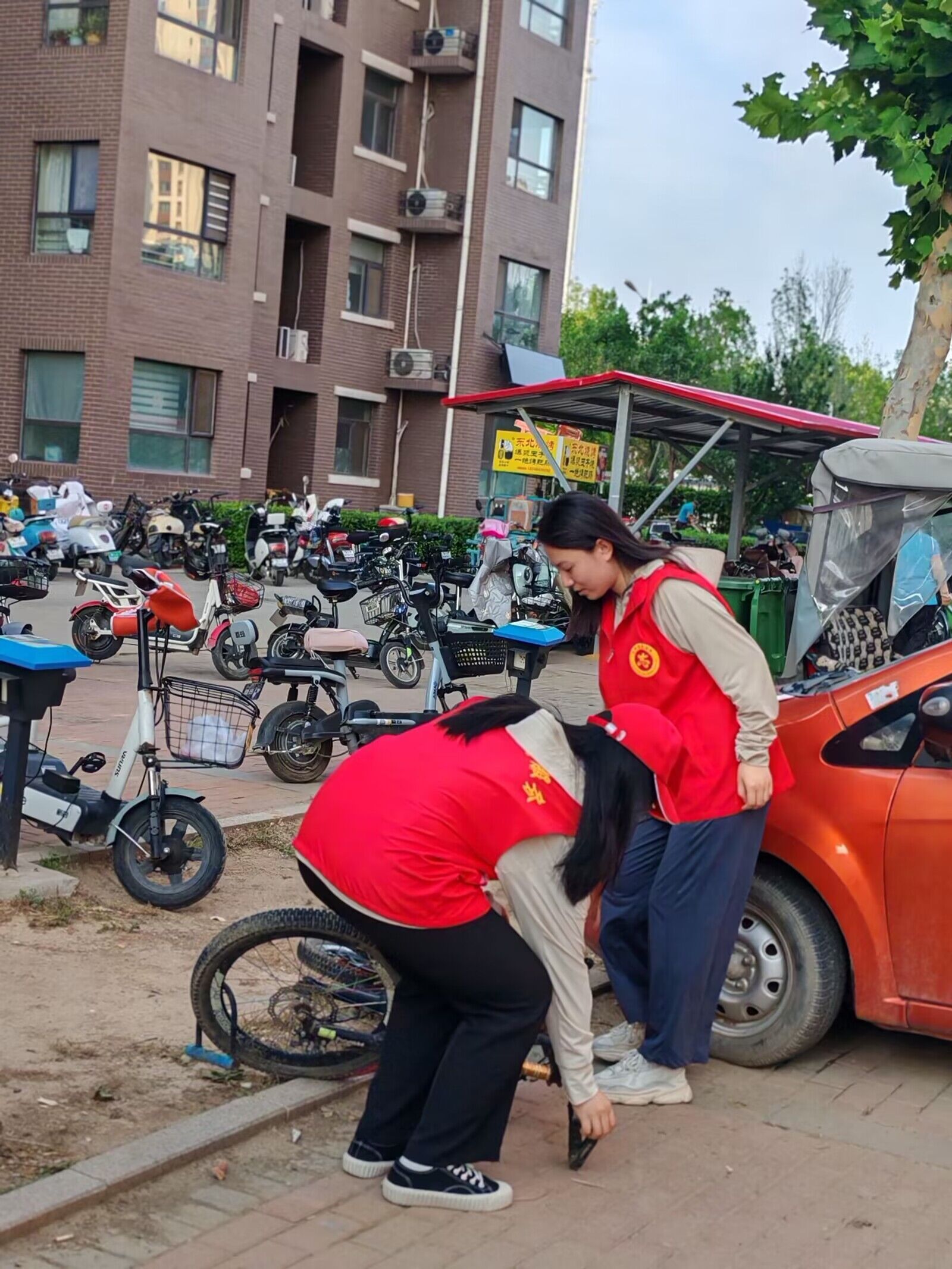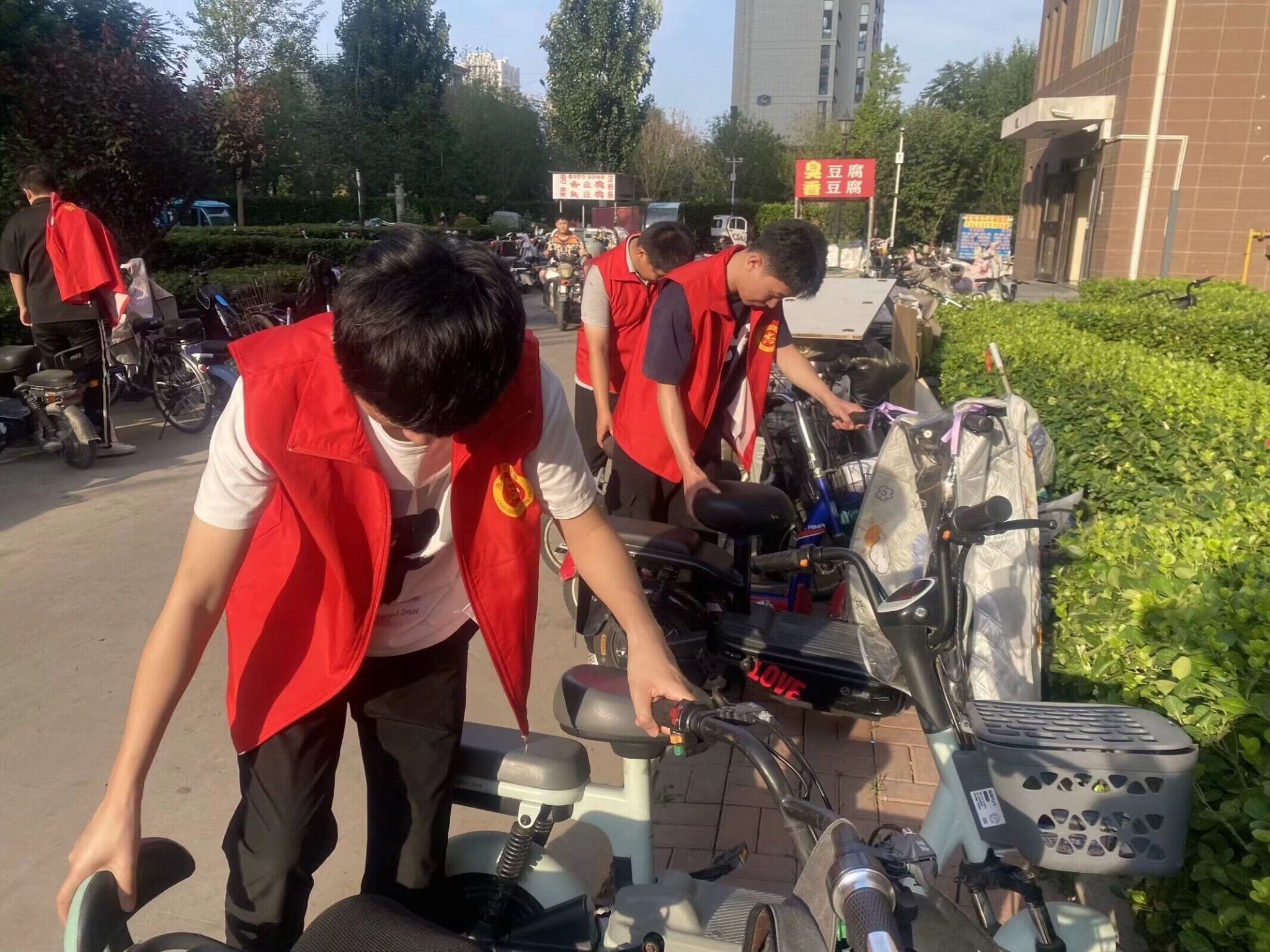 在活动过程中,毕业生党员们手持夹子和塑料袋认真捡拾路面上和路边草地上的垃圾,对绿化带、花坛等卫生死角也进行了全方位的清理,甚至有些同志放下手中的工具,徒手对一些难以清理的卫生死角进行拾捡,让每个角落都焕然一新,毕业生党员还摆放了自行车、电动车,引导停车秩序,向市民宣传居民公约和创城精神等。毕业生党员亮出身份、亮出形象,积极、主动、热情地进行志愿服务,充分展示了我校党员志愿者的良好风采。