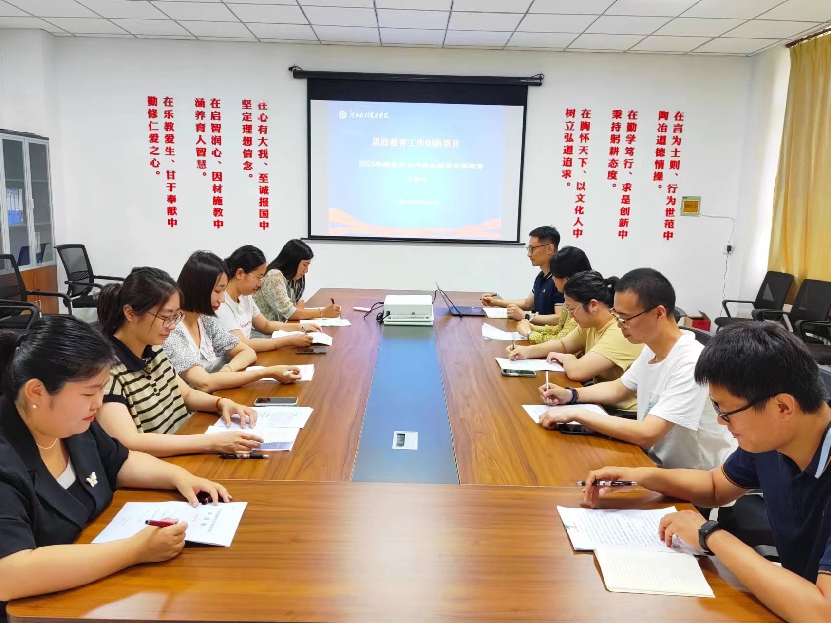 会上,各系辅导员对近年来本系特色工作的开展实施及进一步申报计划进行了总结汇报,涉及水利文化、党建领航、红色基因、美育教育、言语景观等多方面内容,贴近学生、贴近生活、贴近实际,充分体现了beat365辅导员队伍工作的多样化内容和多元化场景。水利系辅导员刘晓延申报的《崇德尚学,求实致用——大学生思政教育与水利专业教育互通互融探索与实践》通过“一心双聚三点四度”工作机制,以水利专业教育融入思想政治教育活动为“切入点”,打造思想政治教育“有高度、有广度、有深度、有力度”四度空间。经贸系辅导员刘逸群申报的《以美启真、以美储善——“五育融合”视域下“美育+”浸润工程》以“美”为纽带,以美学元素为中介,将德智体美劳连结在一起。计算机系团委书记陈欢欢申报的《“党建领航·育人铸魂”——高校基层党建与复合型人才培养的创新实践》以特色党建为引领,将专业知识和社会需求相结合、社会实践和科技创新相结合、思政教育和日常生活相结合、学科竞赛和导师项目相结合促学生综合素质提升。