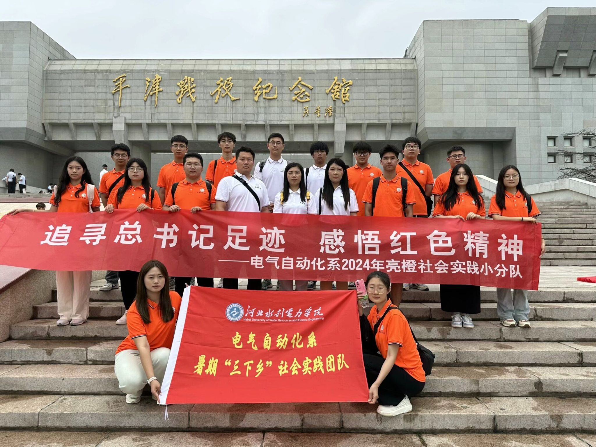 为深入学习贯彻习近平总书记视察天津重要讲话精神,踔厉奋发,勇毅前行,坚持不懈用习近平新时代中国特色社会主义思想凝心铸魂,7月4日,电气自动化系“亮橙”实践小分队沿着习近平总书记天津考察路线先后来到平津战役纪念馆和西青区辛口镇第六埠村,开展以“追寻总书记足迹,感悟红色精神”为主题的暑期社会实践活动。