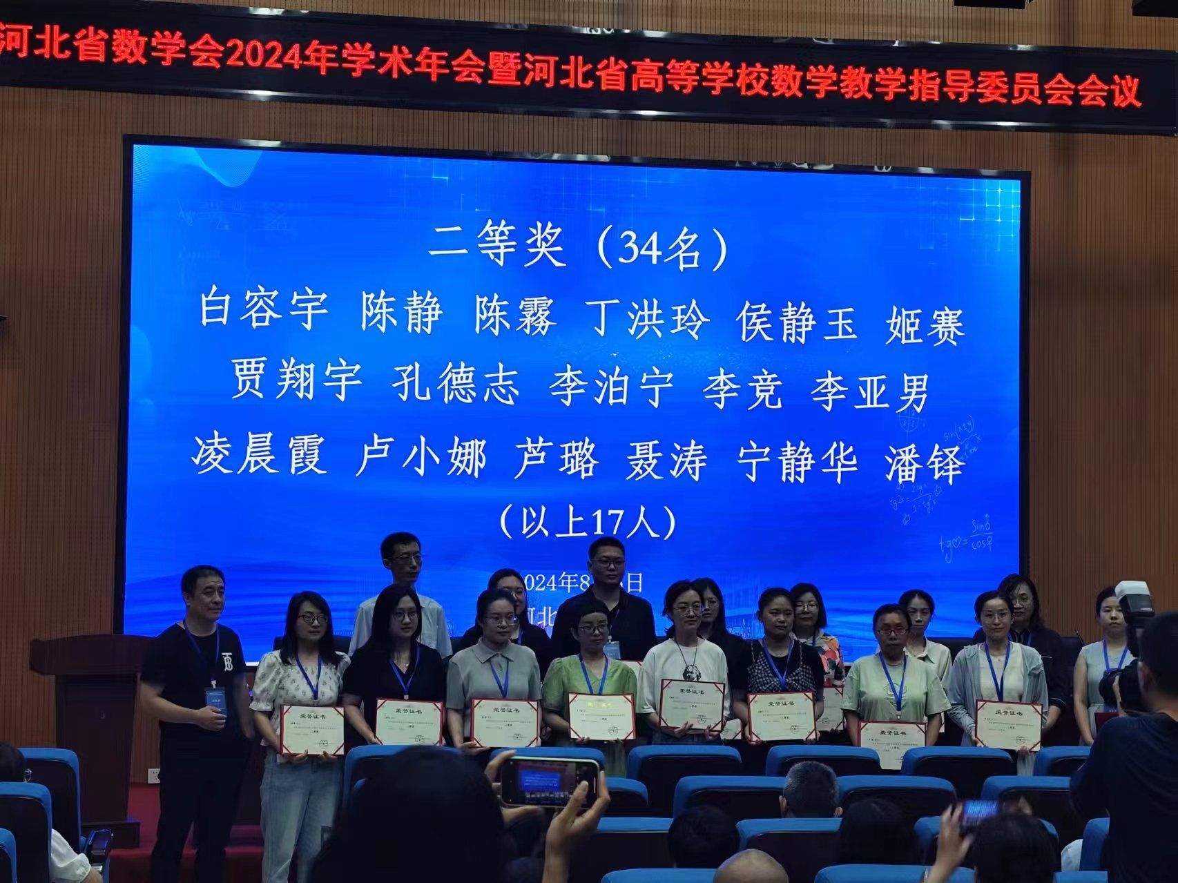 8月3日至6日,由河北省数学会、河北省高等学校数学教学指导委员会共同主办,河北师范大学承办的“河北省数学会2024学术年会暨河北省高等学校数学教学指导委员会会议”在石家庄市召开。beat365基础部数学教研室主任肖金桐带队,王焕东、刘营营、张晓雅、潘梦曦、朱迪共同参会,青年教师孟杰、孔德志作为代表参加高校青年教师课堂教学比赛。