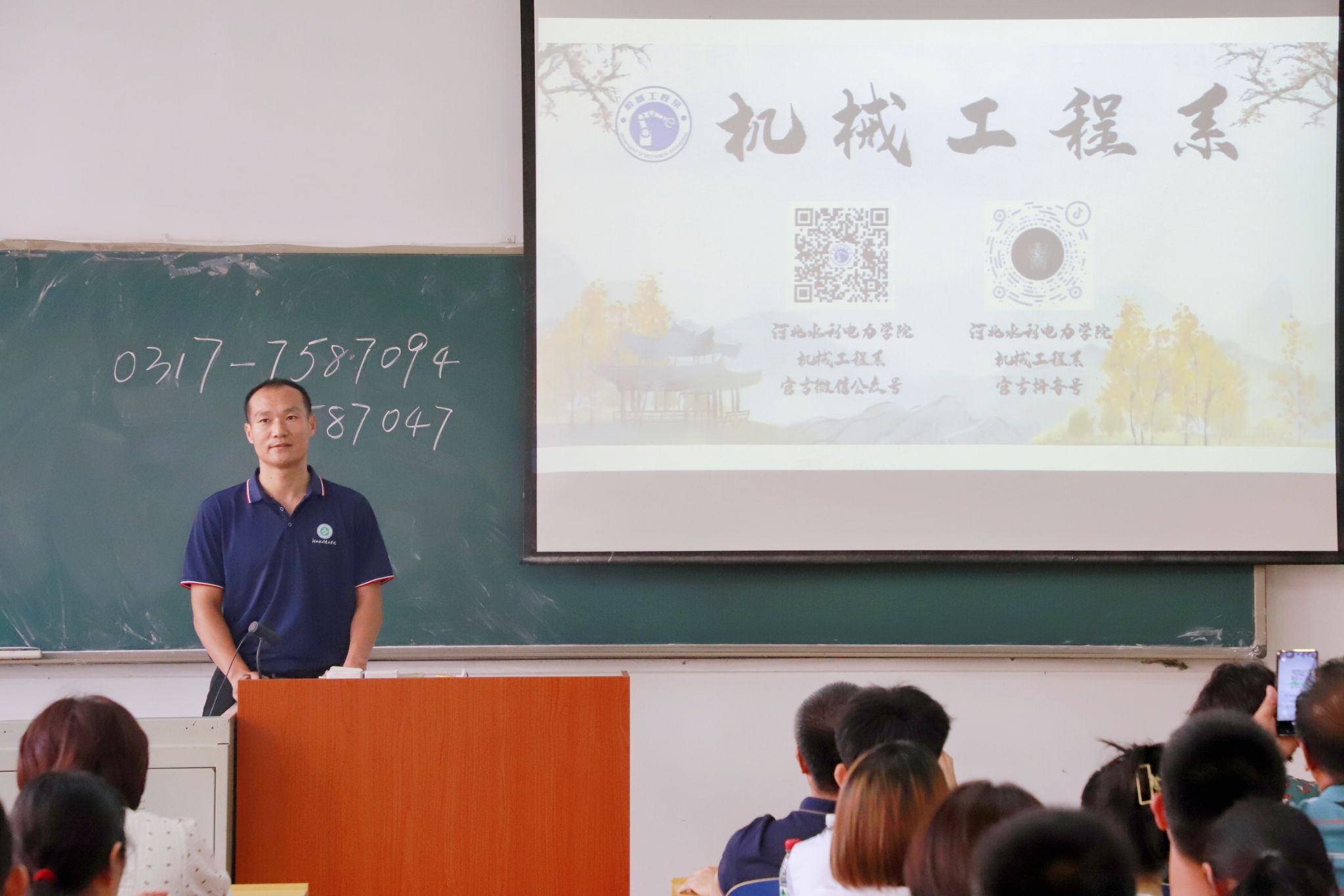 随后,张铁壁对机械工程系的专业和课程设置、学习指导进行了详细介绍。并讲解了机械工程系的核心课程、实践环节以及学术资源的利用。他特别提到,机械工程是一个实践性强的学科,学生们将有机会参与各种项目和实验,这对他们的学术成长至关重要。希望每位新生都能在学校的培养下,成长为具有创新精神和社会责任感的高素质人才。